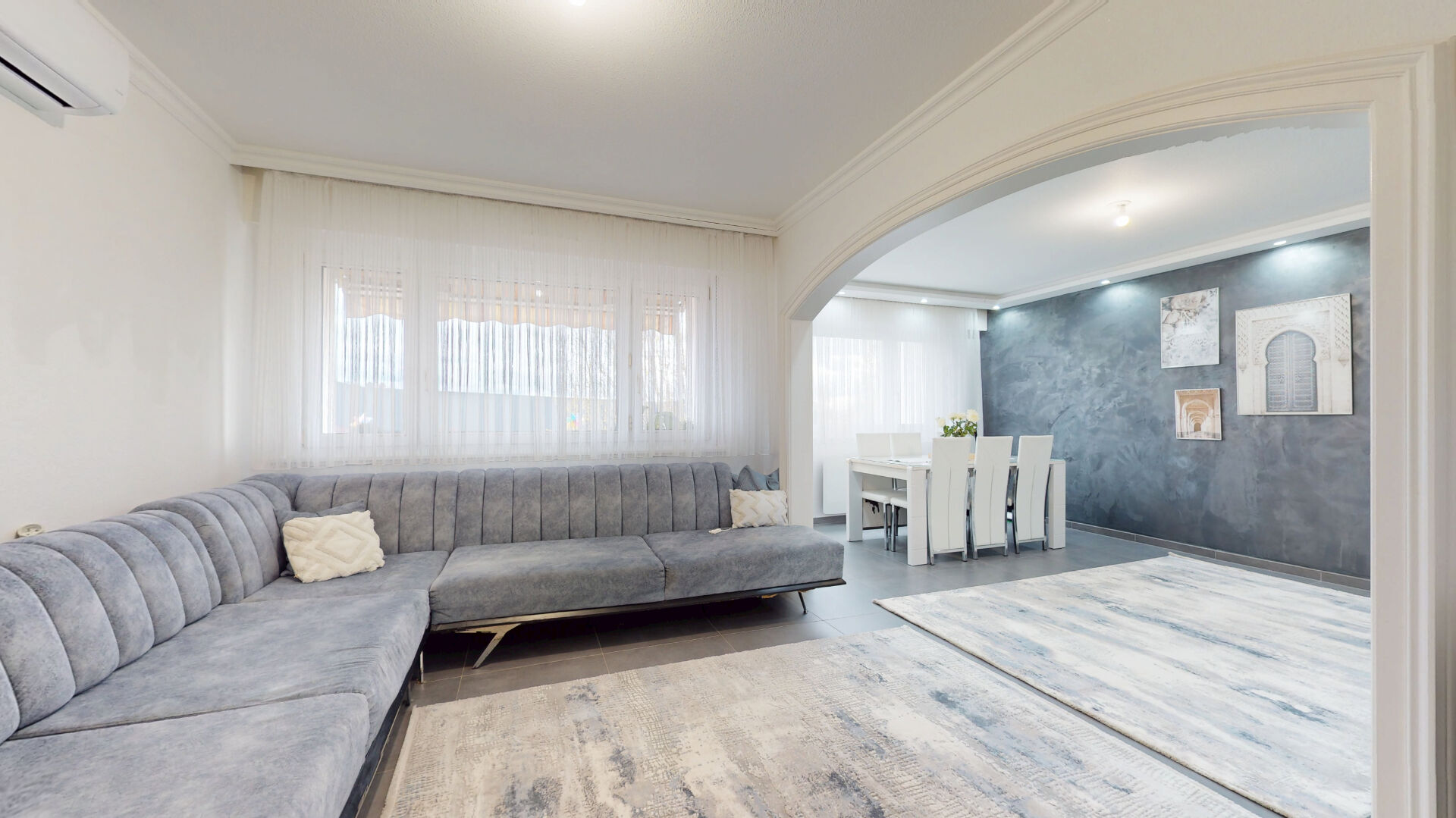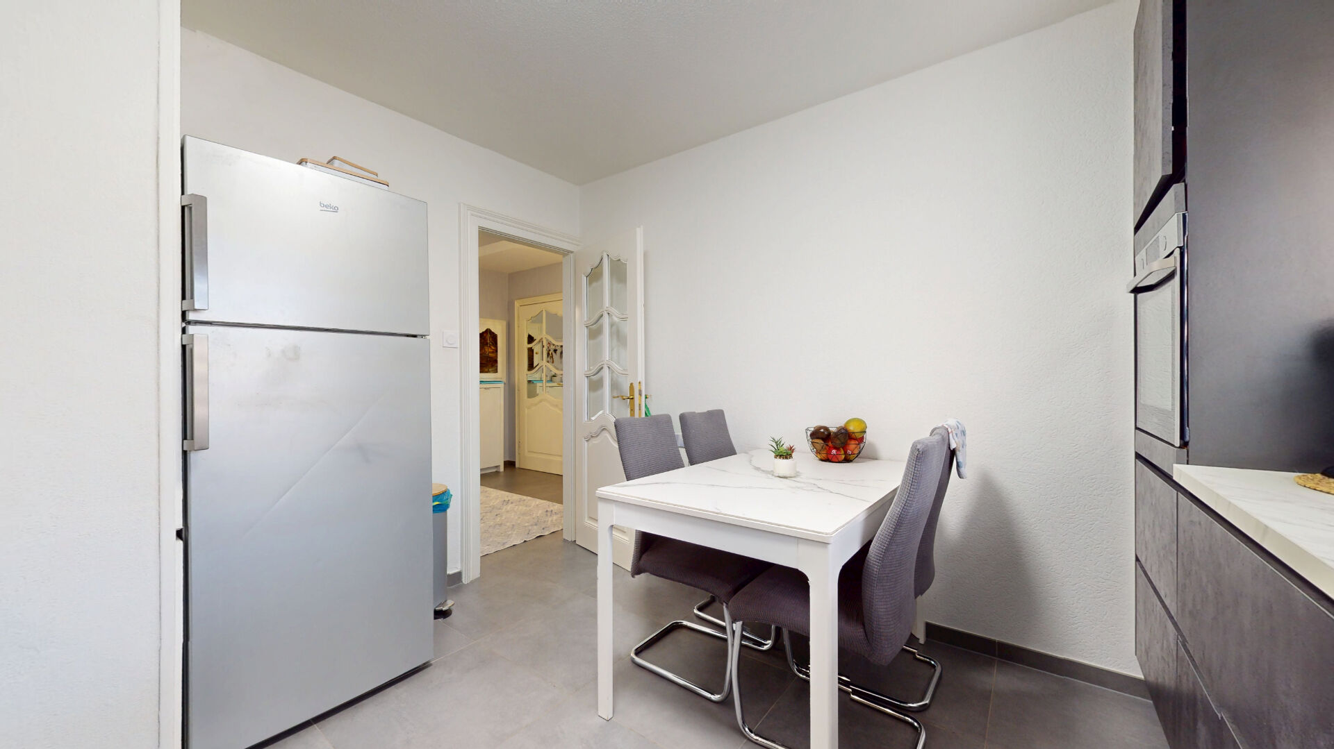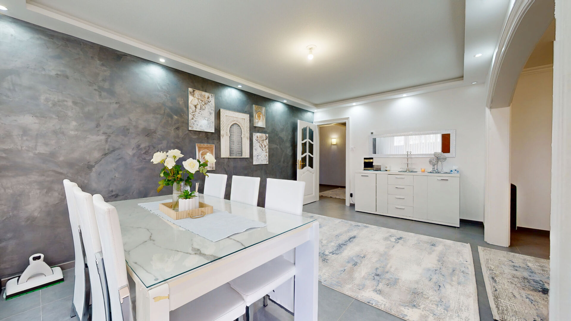 Entièrement rénové avec goût, ce bien offre des prestations de qualité et des volumes généreux. Il se compose d'une entrée spacieuse desservant un vaste salon/séjour lumineux de 30,44 m², agrémenté d'un beau carrelage au sol, de radiateurs électriques récents et performants, ainsi que d'un faux plafond avec éclairage LED intégré.