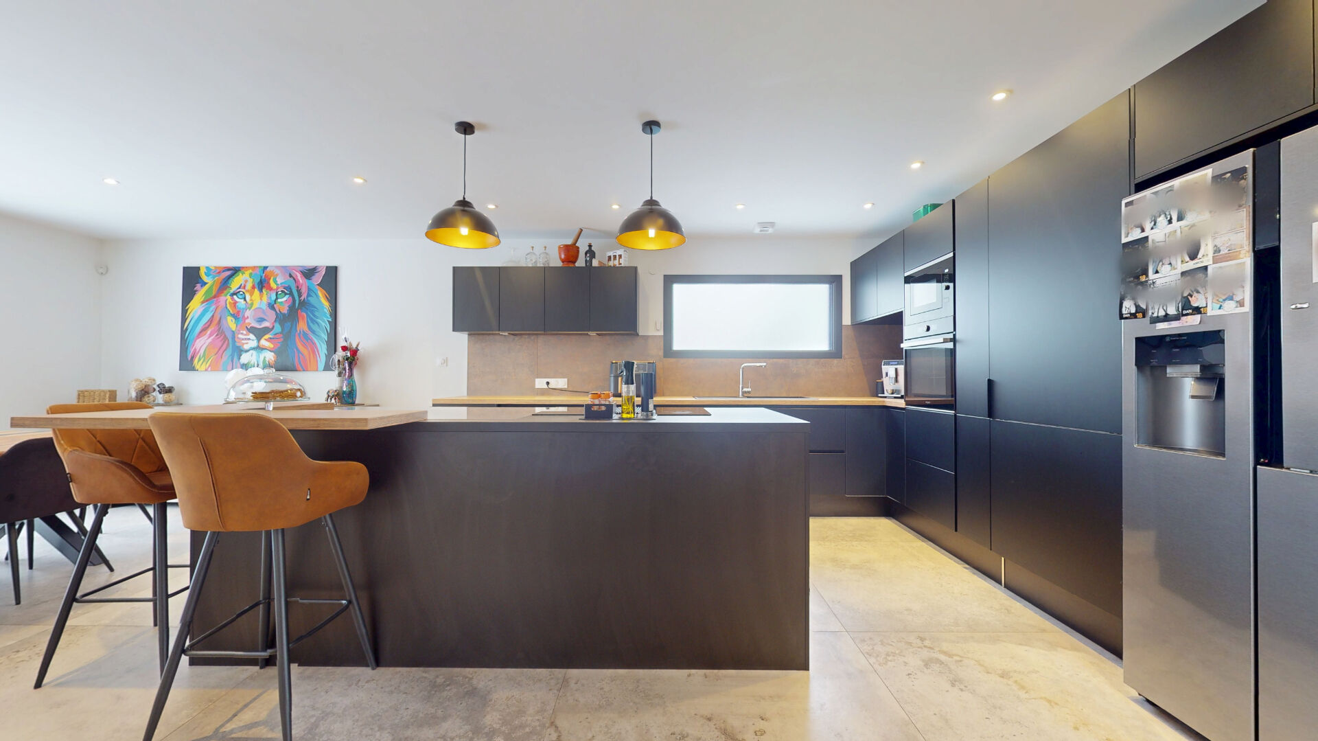 Développant une surface habitable de 271,64 m², cette propriété d'exception séduit par ses volumes généreux, ses prestations haut de gamme et son architecture résolument moderne, le tout édifié sur un terrain clos et paysagé de 585 m².