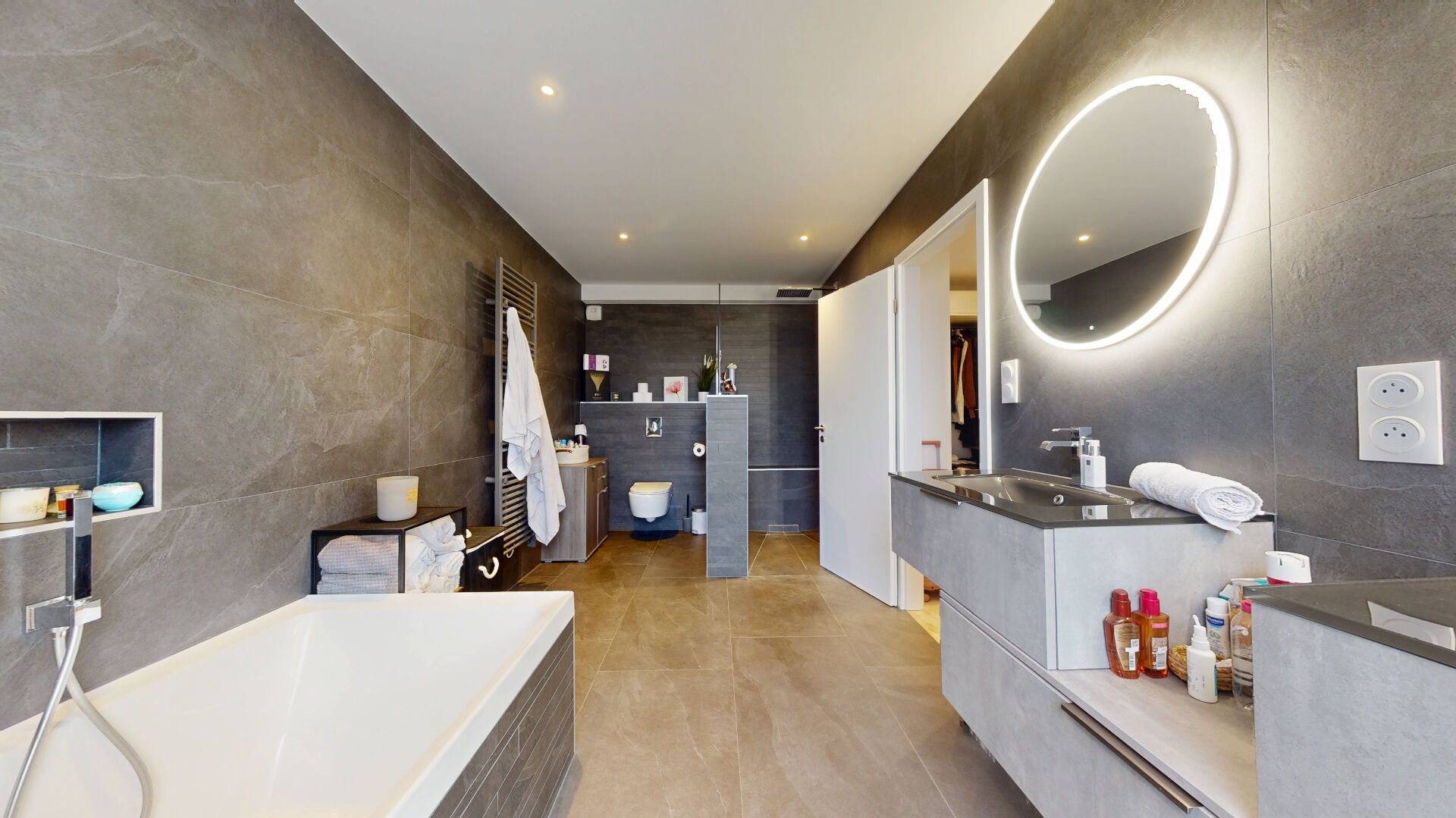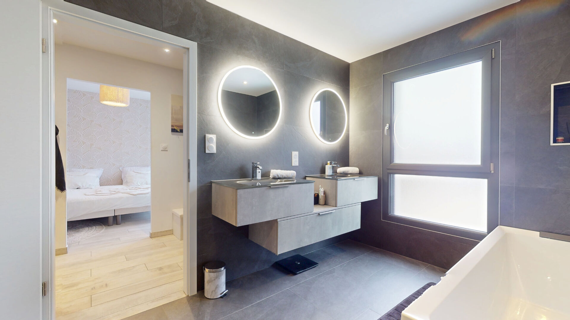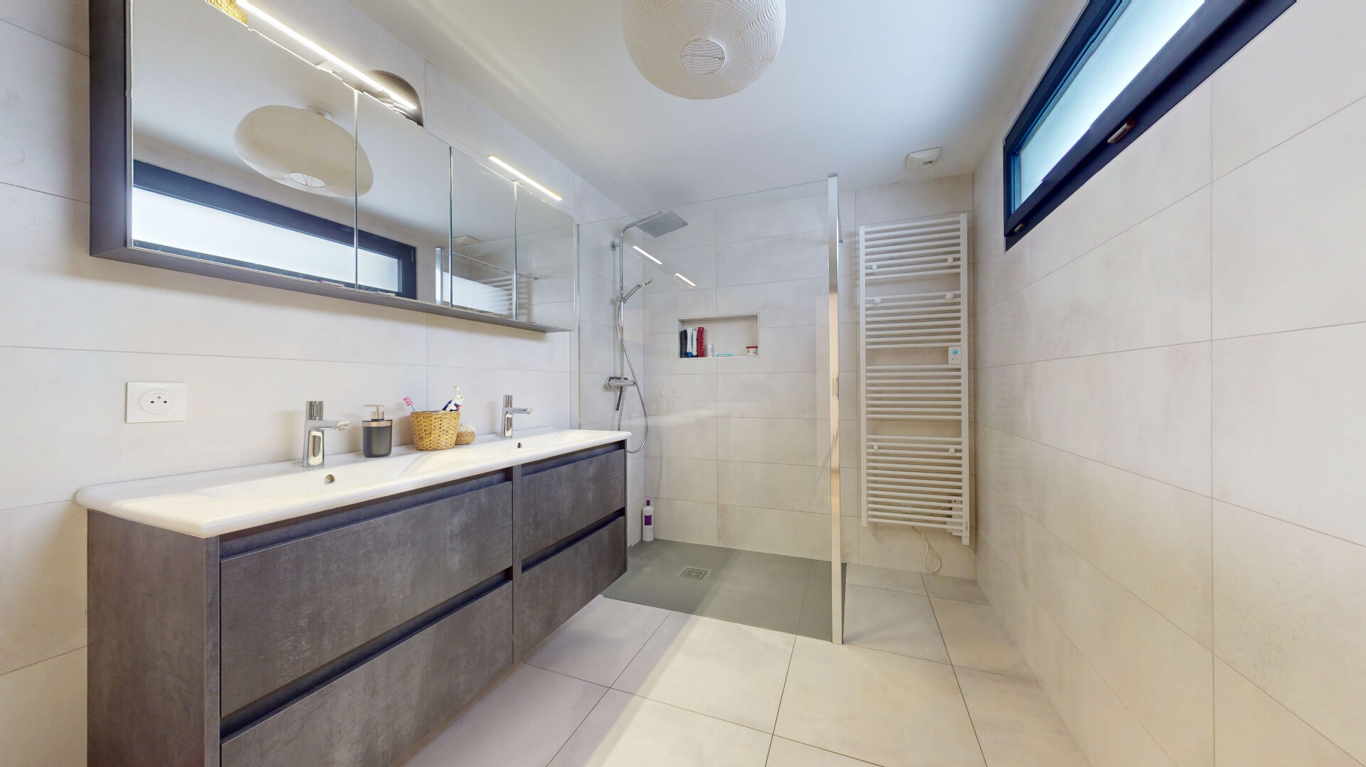 Quatre chambres spacieuses, bénéficiant d'une salle d'eau avec douche à l'italienne et double vasque, idéale pour une famille.