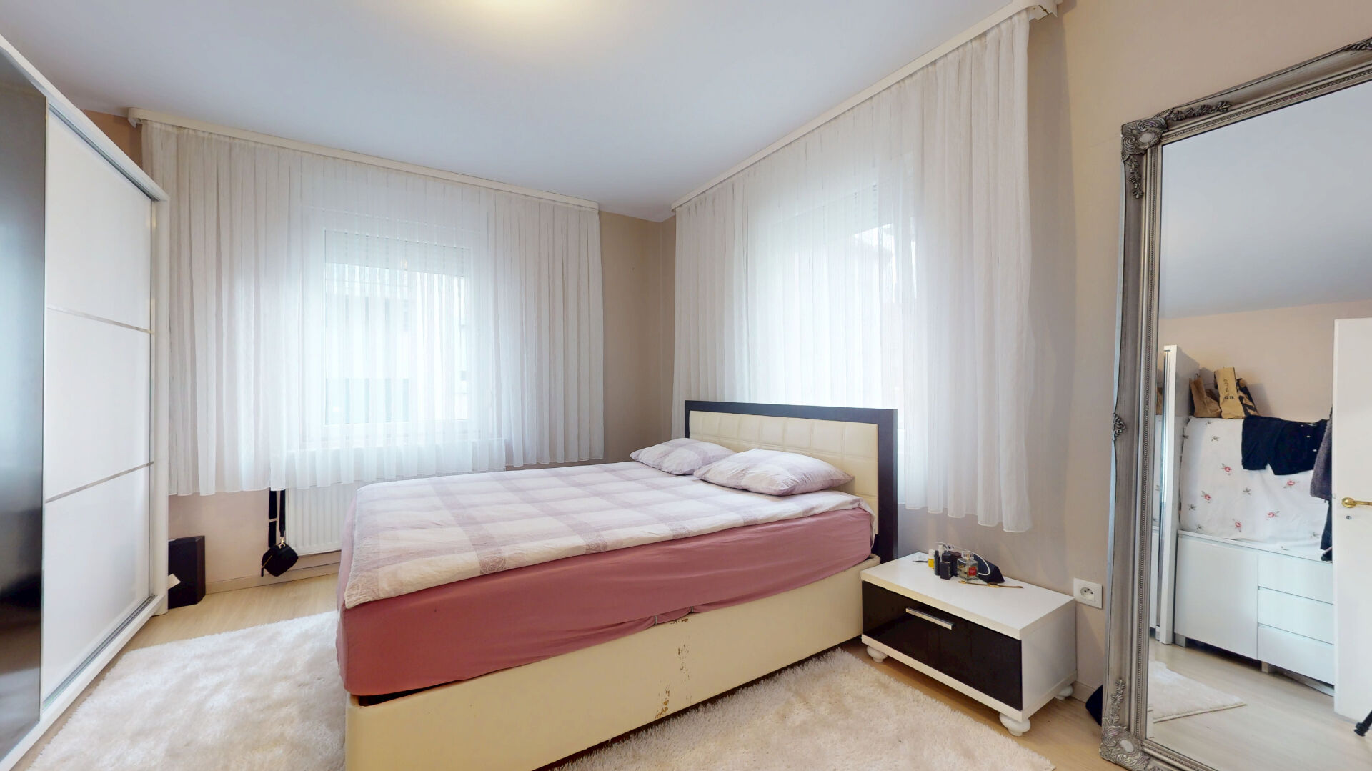 L'appartement dispose de trois chambres + une pièce bureau, ainsi que d'une salle de bains, une salle d'eau et 2 wc.