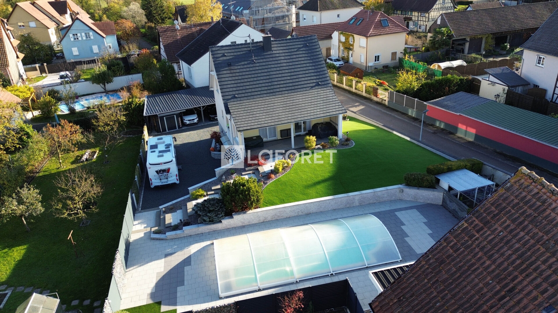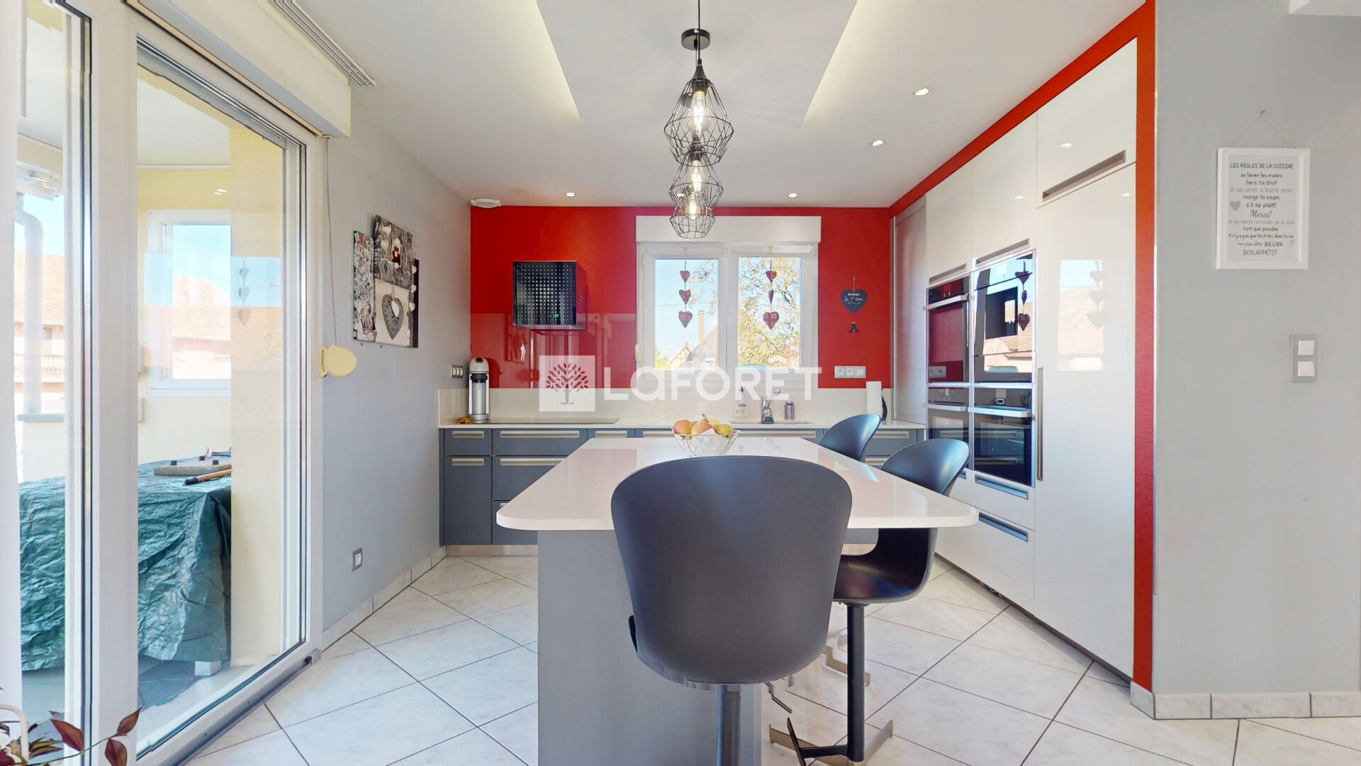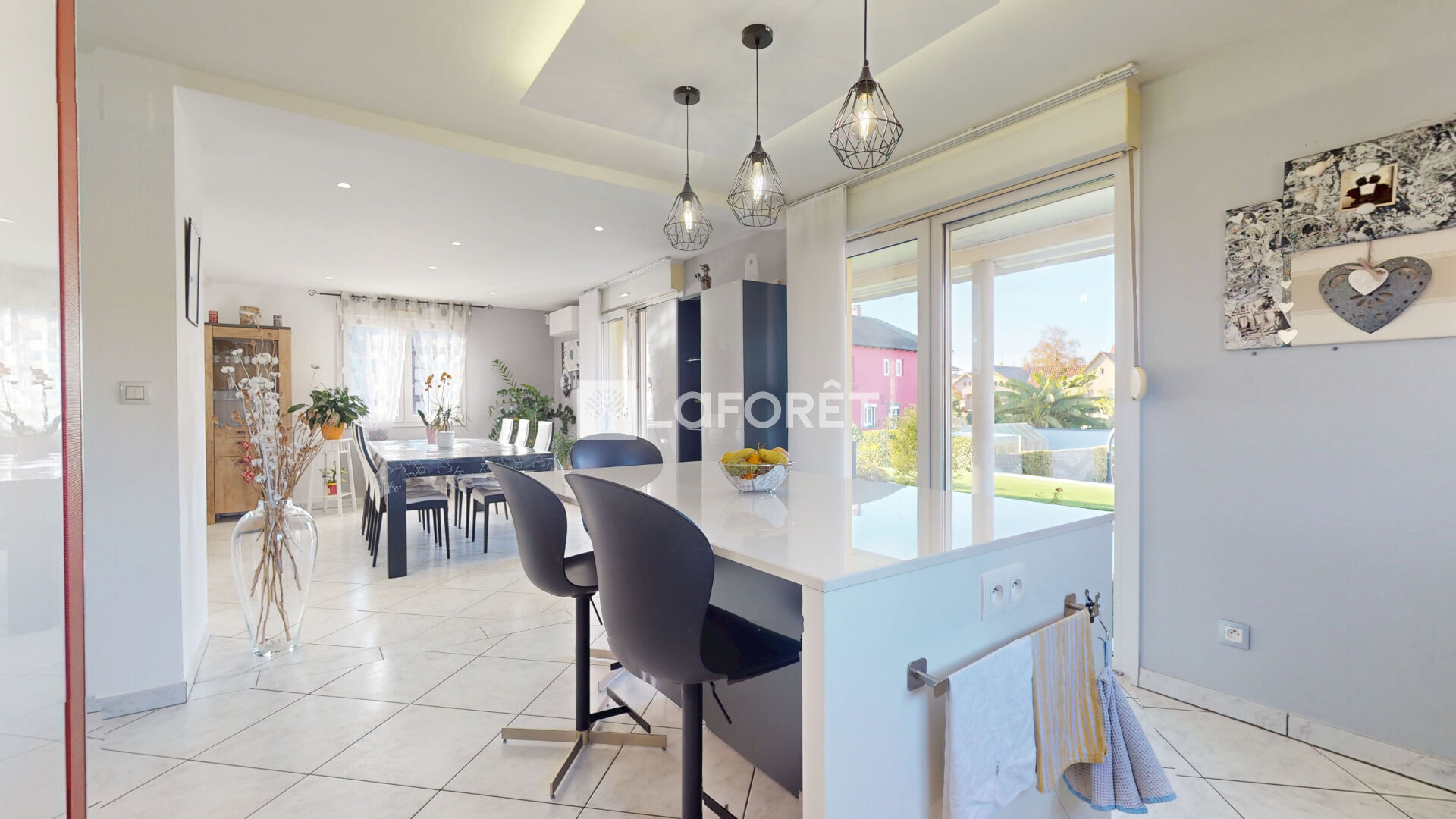 Au rez-de-chaussée surélevé, vous découvrirez un vaste salon-séjour lumineux, ouvert sur une cuisine entièrement équipée. Deux grandes baies vitrées offrent un accès direct à une spacieuse terrasse couverte, parfaite pour vos moments de détente. Un bureau de plus de 8 m² ainsi qu'un WC complètent ce niveau.