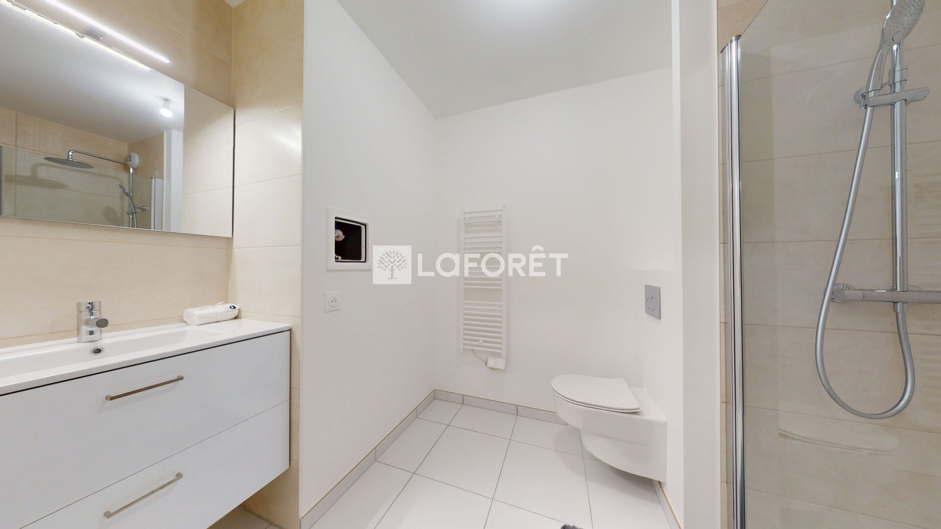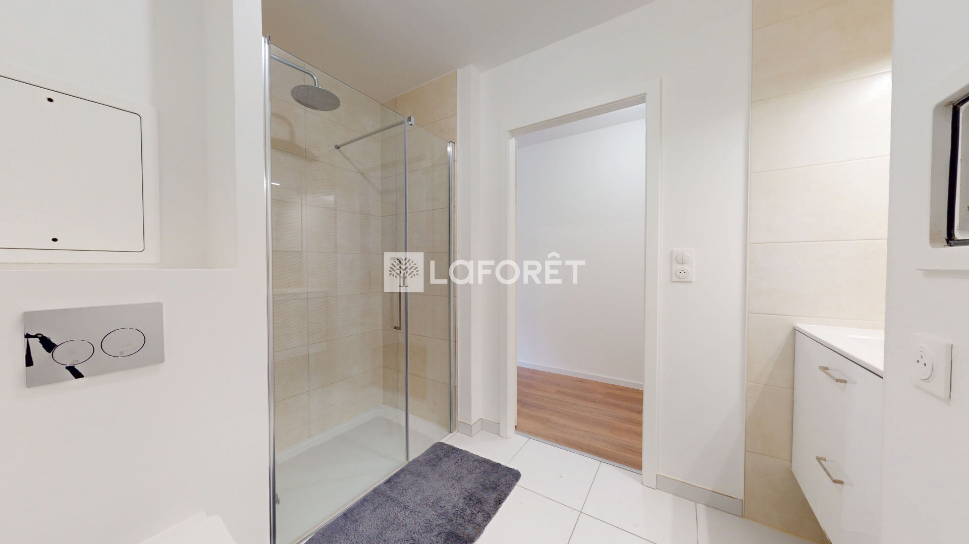 Vous disposez d'une entrée avec placard, d'une salle d'eau avec douche, WC et meuble vasque, d'une cuisine entièrement aménagée et équipée avec de nombreux rangements, ouverte sur le séjour.