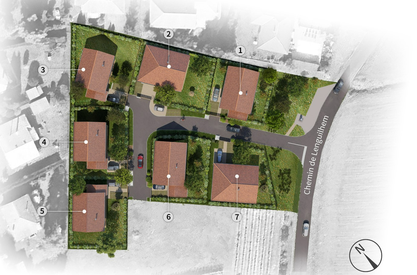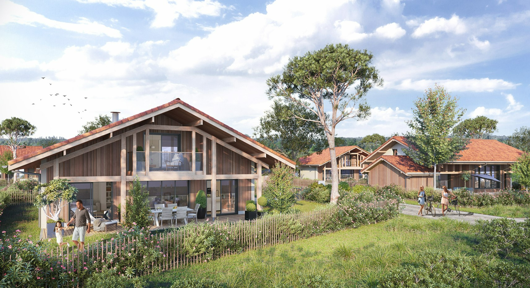 Chacune des maisons a été étudiée pour que tous les logements bénéficient d'espaces de vie à l'extérieur confortables, intimes (gestion du vis à vis), et ensoleillement estival ou des vents dominants.