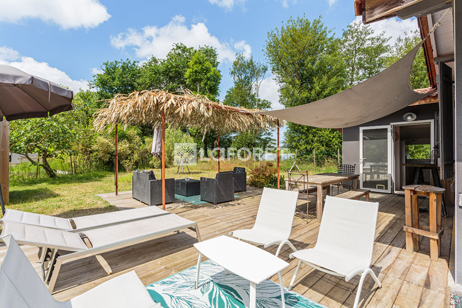 Vous rêvez d'un cadre de vie exceptionnel ? Cette maison de plain-pied, d'environ 80 m² rénovée en 2020, est faite pour vous. Idéalement située en première ligne face au réputé Lac de Soustons, elle vous offre une vue imprenable et un environnement paisible, au coeur d'un terrain arboré de 1000 m².