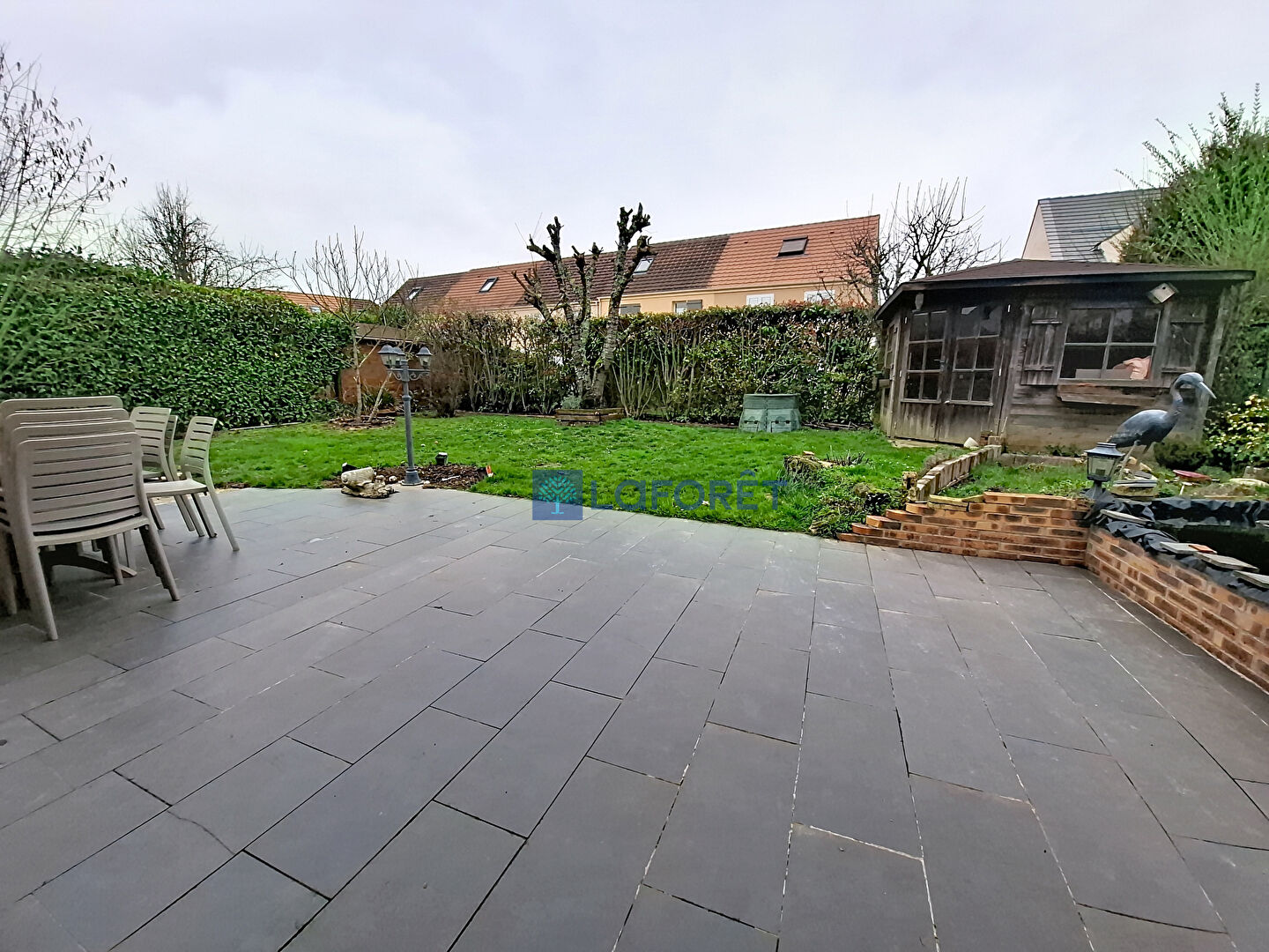 Le jardin paysager, sans vis-à-vis, dispose d'un abri et d'un coin détente.