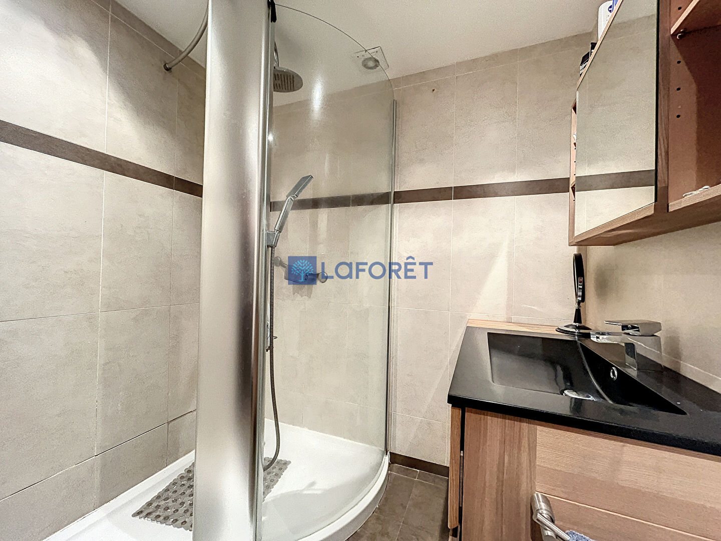 Vous trouverez également un w.c et une salle d'eau, ainsi qu'une pièce traversante offrant de nombreuses possibilités d'aménagement et une salle vidéo.