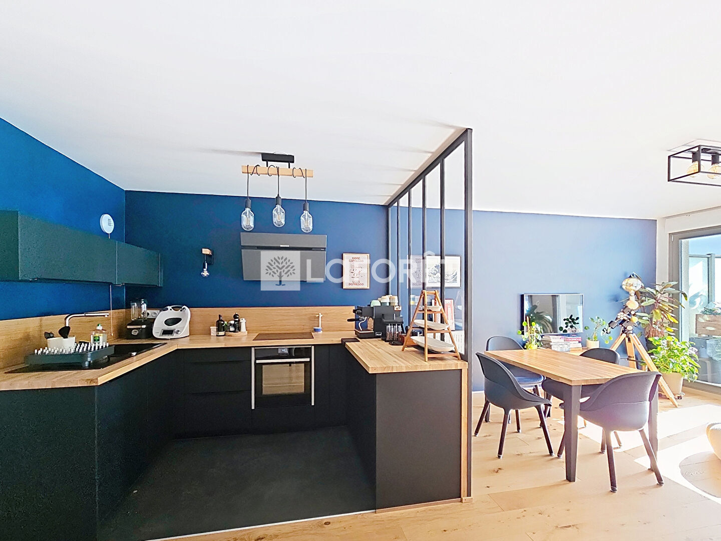 Une cuisine moderne aménagée et équipée ouverte sur séjour exposé Sud offrant un espace convivial de 29 m².