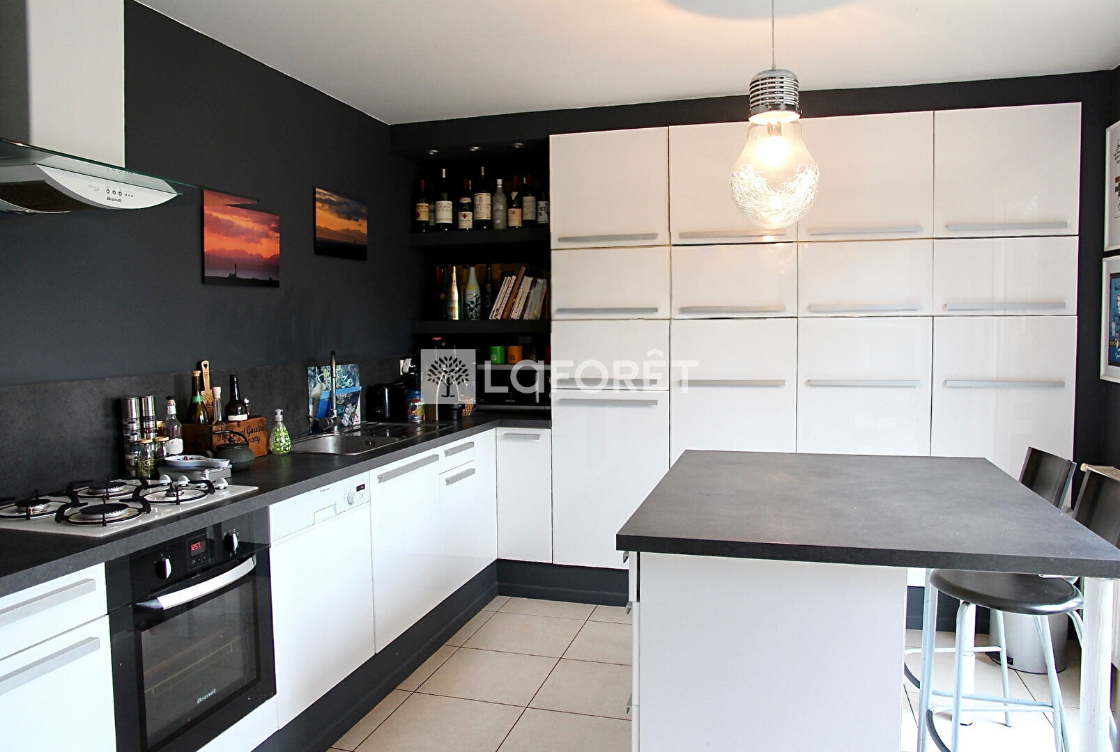 La cuisine semi-ouverte, moderne et fonctionnelle, dispose d'une baie à galandage permettant sa fermeture complète selon vos envies.