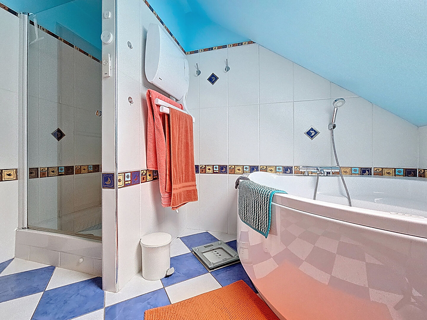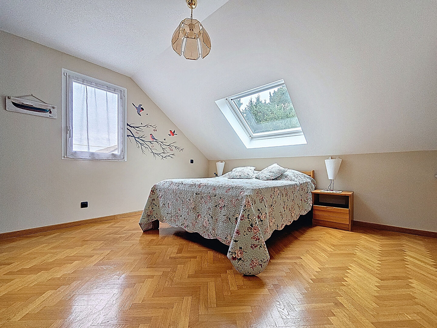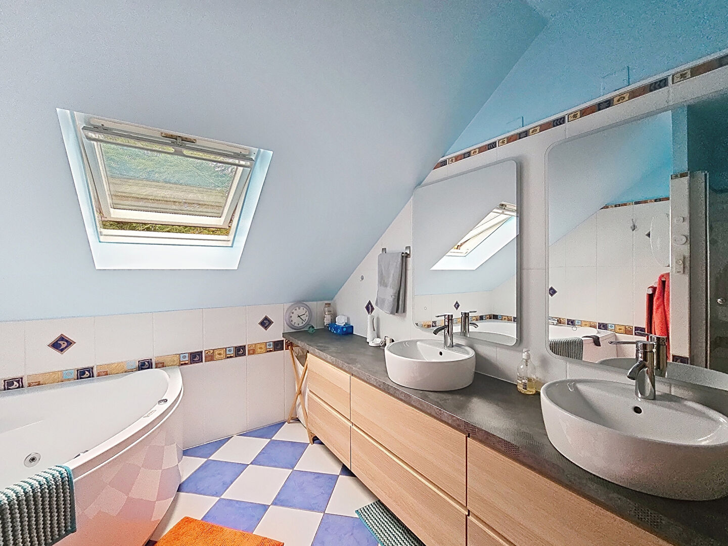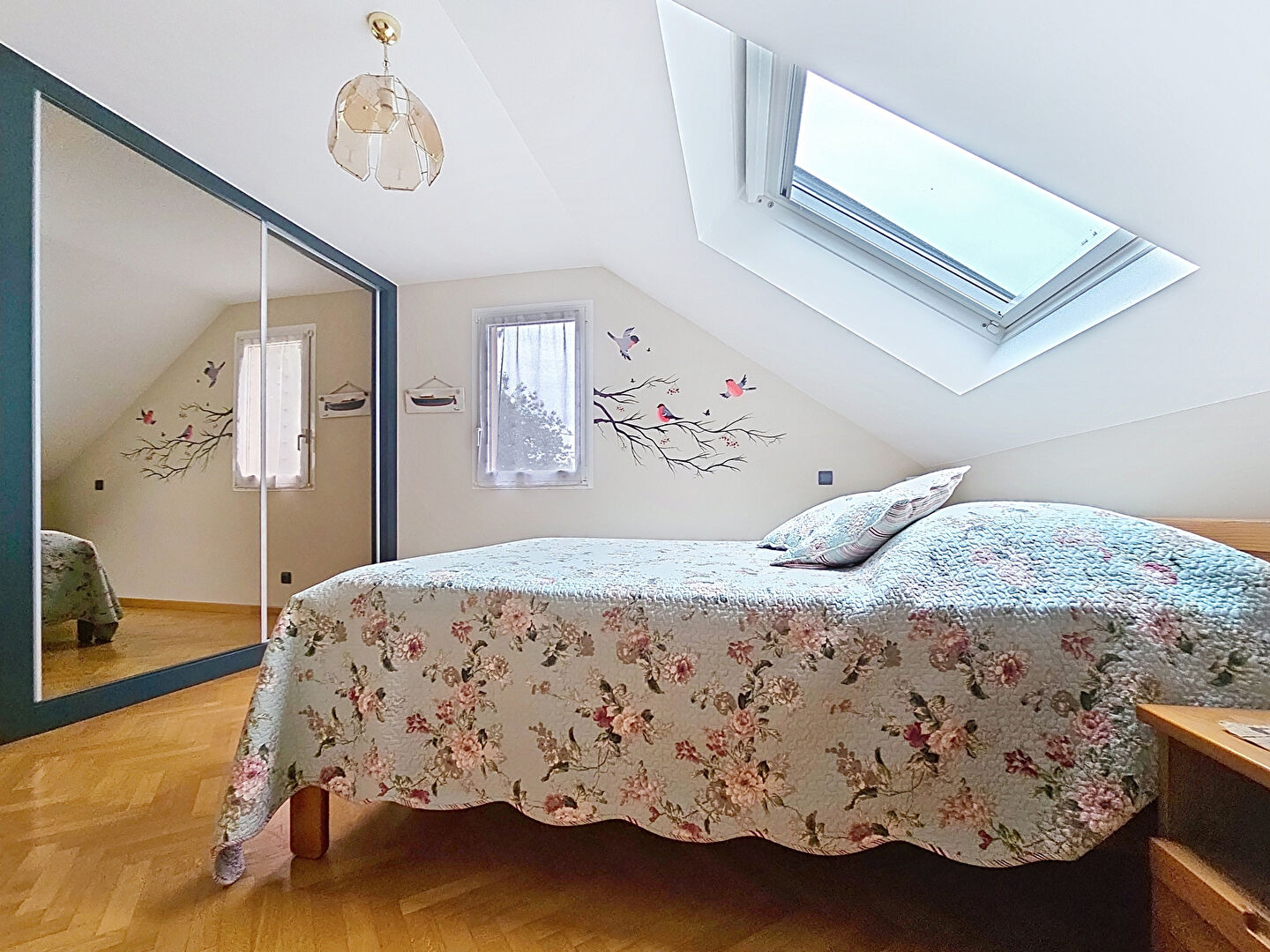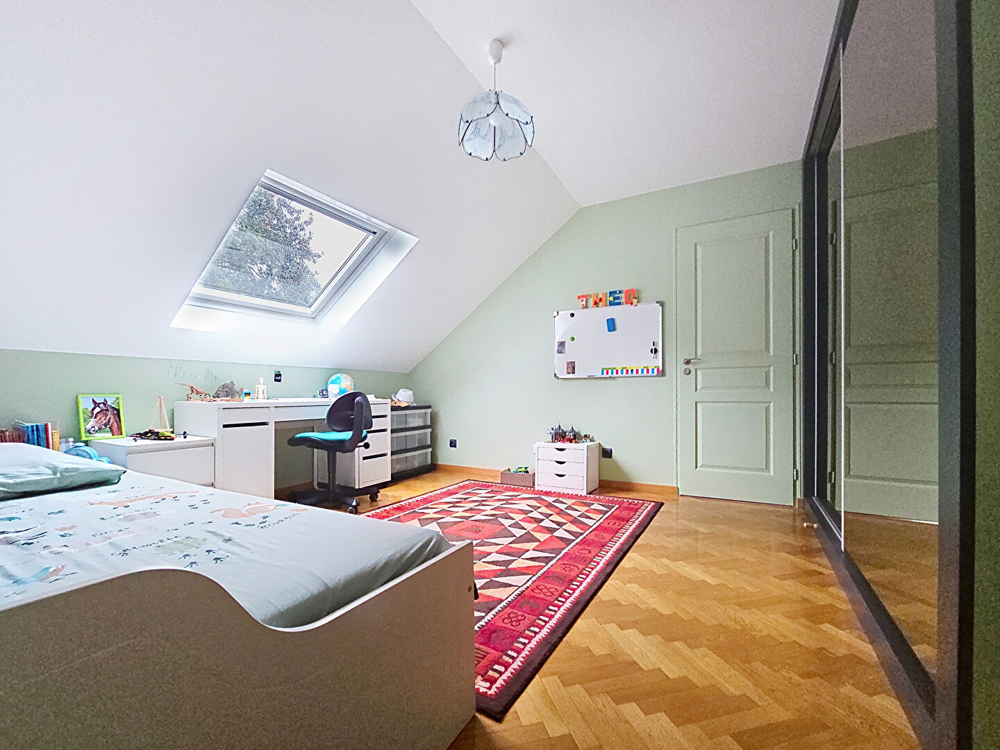 A l'étage, vous trouverez un palier ouvert et lumineux, quatre chambres dont une en enfilade pouvant servir de salle de jeux ou de sport, une salle de bain avec baignoire et douche, un WC indépendant avec lave-mains et une suite parentale avec dressing et salle d'eau et WC privés.