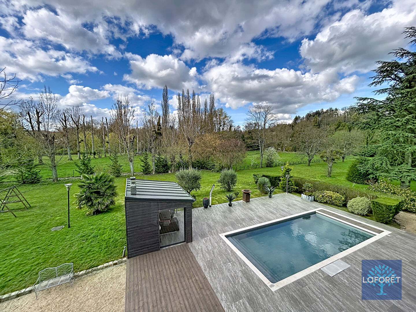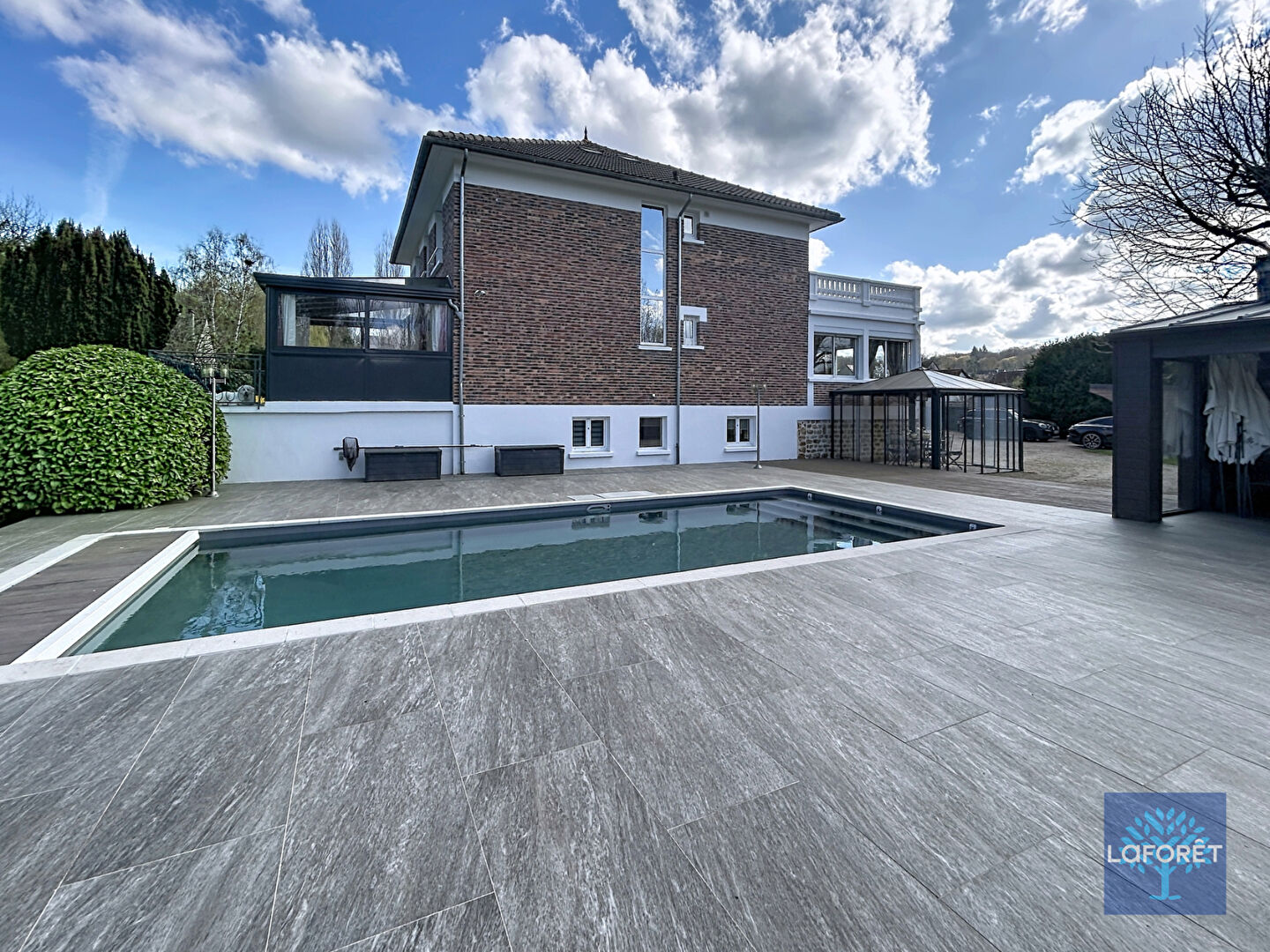 À l'extérieur, le parc constitue un véritable jardin d'agrément. Richement arboré et parfaitement structuré, il propose plusieurs espaces de détente, de charmants salons extérieurs, une élégante gloriette, ainsi qu'un superbe espace piscine accompagné d'une cuisine d'été entièrement aménagée, permettant de profiter pleinement des beaux jours dans un cadre idyllique.