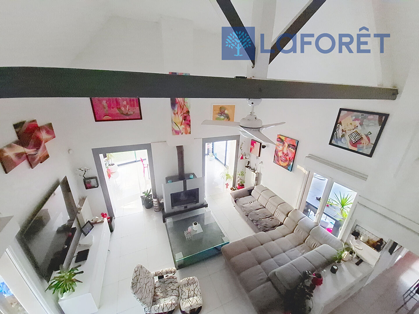 - Double séjour cathédrale baigné de lumière naturelle, avec poêle à bois, pour des soirées chaleureuses.