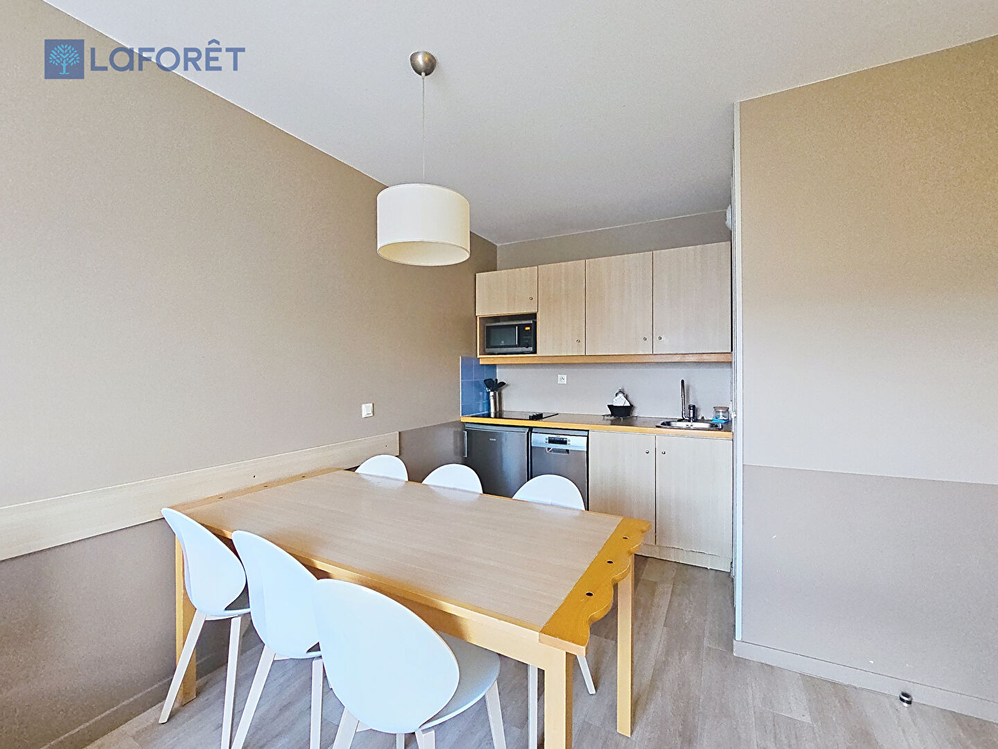 Type : 3 pièces meublé , deux chambres, un wc indépendant, une salle de bain avec WC, terrasse et une place de parking.
