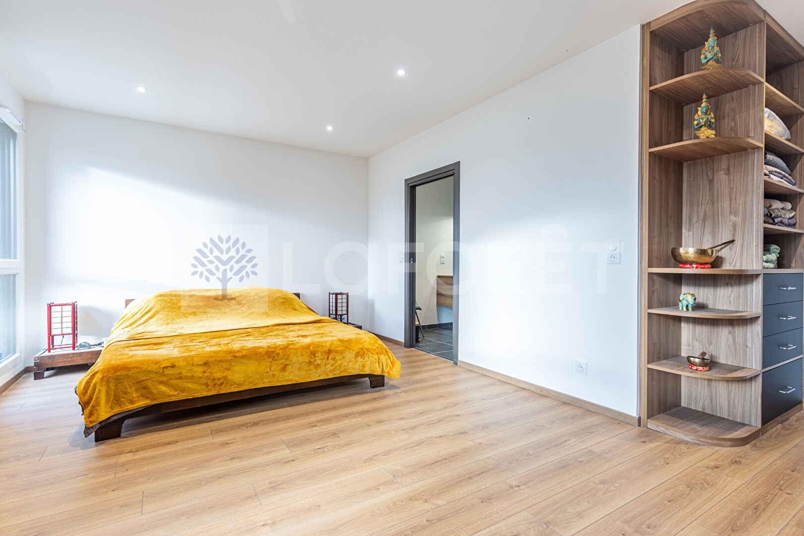 - Espace nuit : Un dégagement dessert deux chambres confortables, dont une suite parentale dotée de son propre dressing et d'une salle d'eau avec WC.