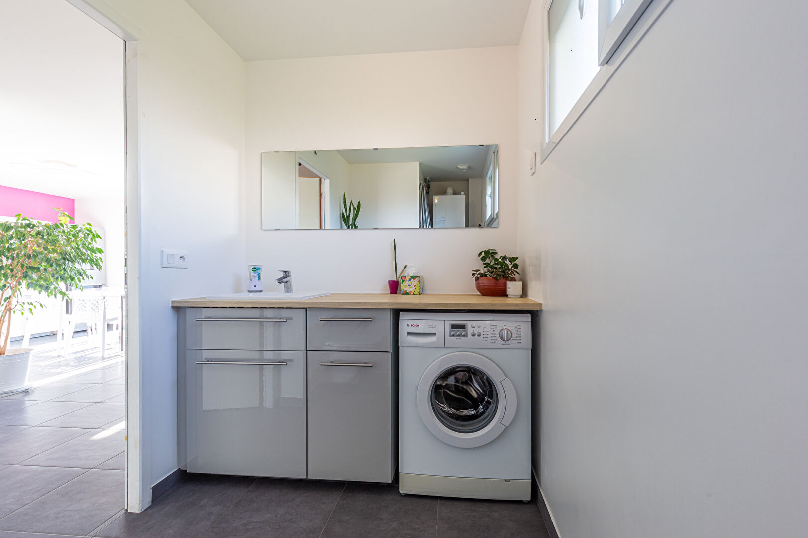 - Un grand garage, une place de stationnement et une buanderie.