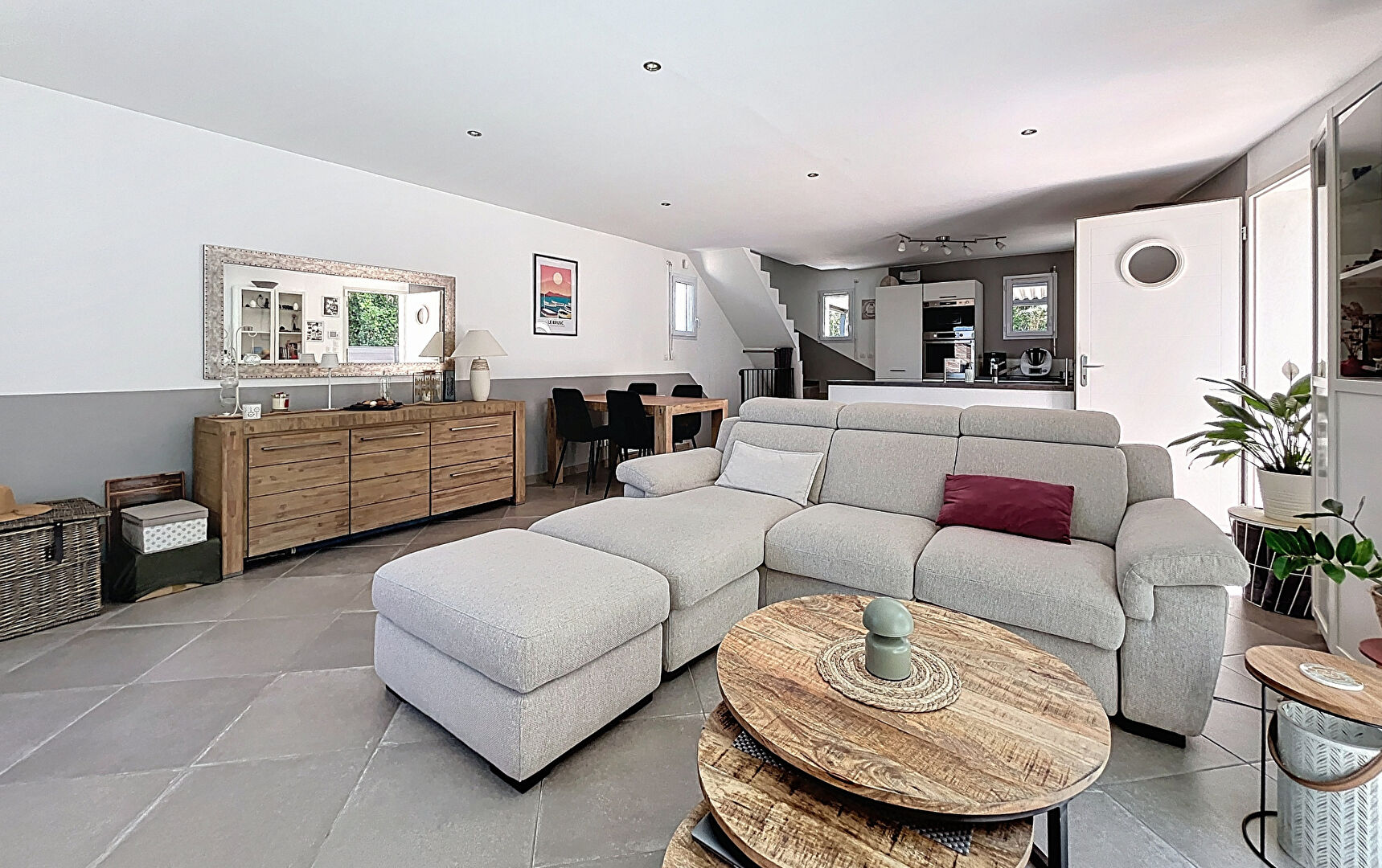 Une dernière pièce de vie de 45 m², avec salle de douche, située en sous-sol surélevé, complète l'ensemble. Elle offre un espace polyvalent, adapté pour une activité professionnelle, la création d'une suite parentale, d'une salle de sport ou simplement pour recevoir.
