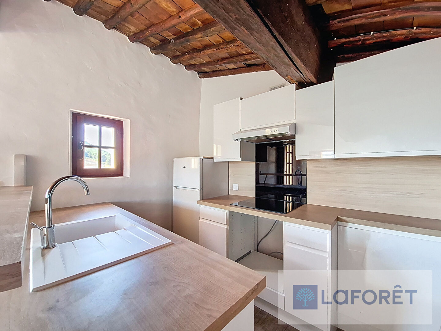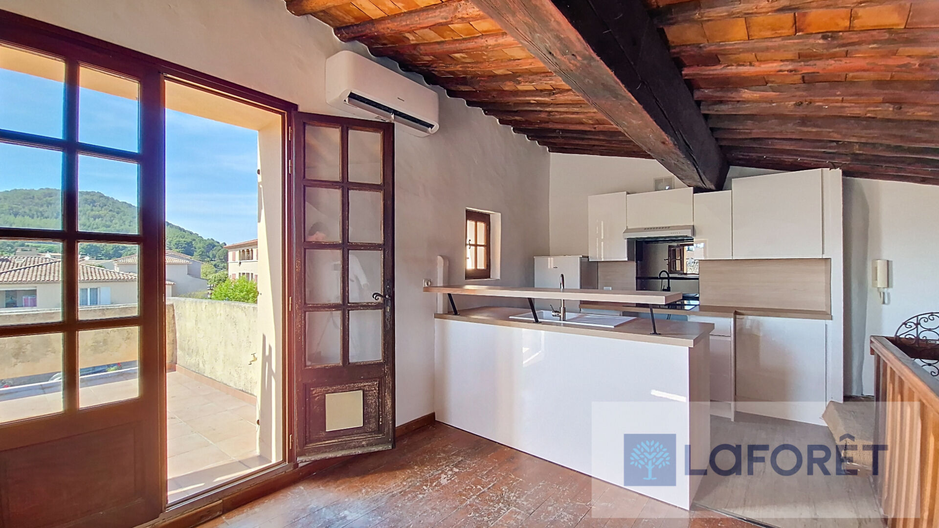 Au 2nd niveau : une mezzanine avec une cuisine ouverte aménagée/semi-équipée (plaque, hotte, meubles) toute neuve, ainsi qu'un accès à une belle terrasse exposée Ouest (7m²).