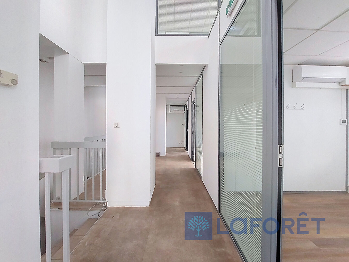 À l'étage : 2 bureaux, une cuisine indépendante, un local technique et des sanitaires, pour une surface d'environ 60 m².