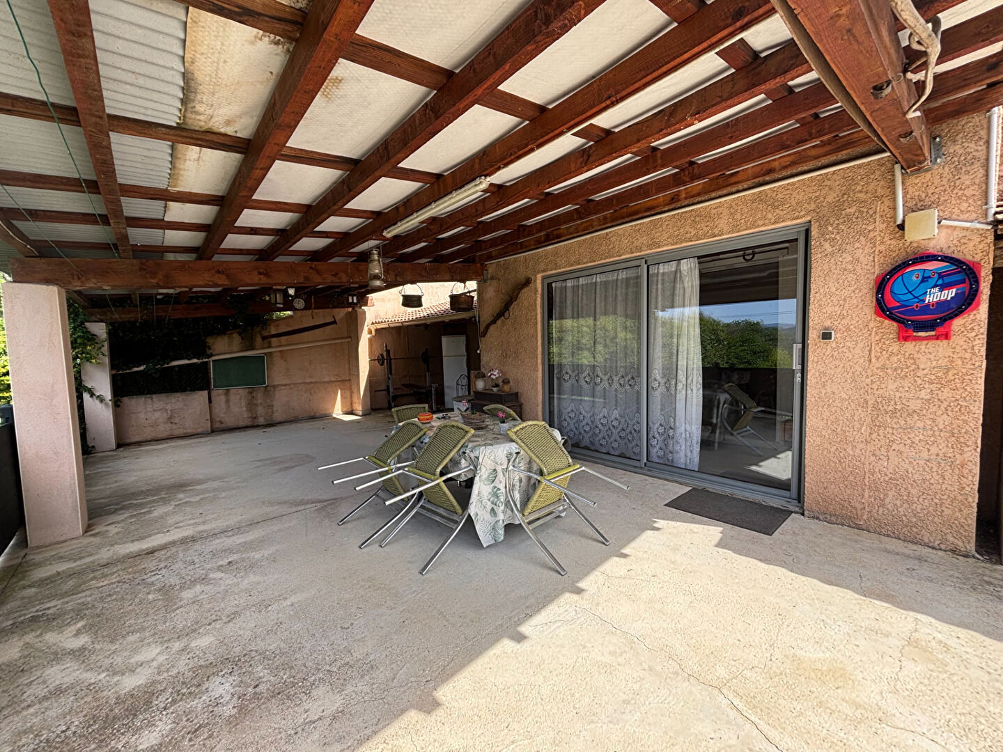 Enfin, la maison bénéficie d'une belle vue dégagée sur le village, créant une atmosphère sereine et agréable. Le quartier est calme et recherché, offrant un cadre de vie paisible tout en étant proche des commodités locales.