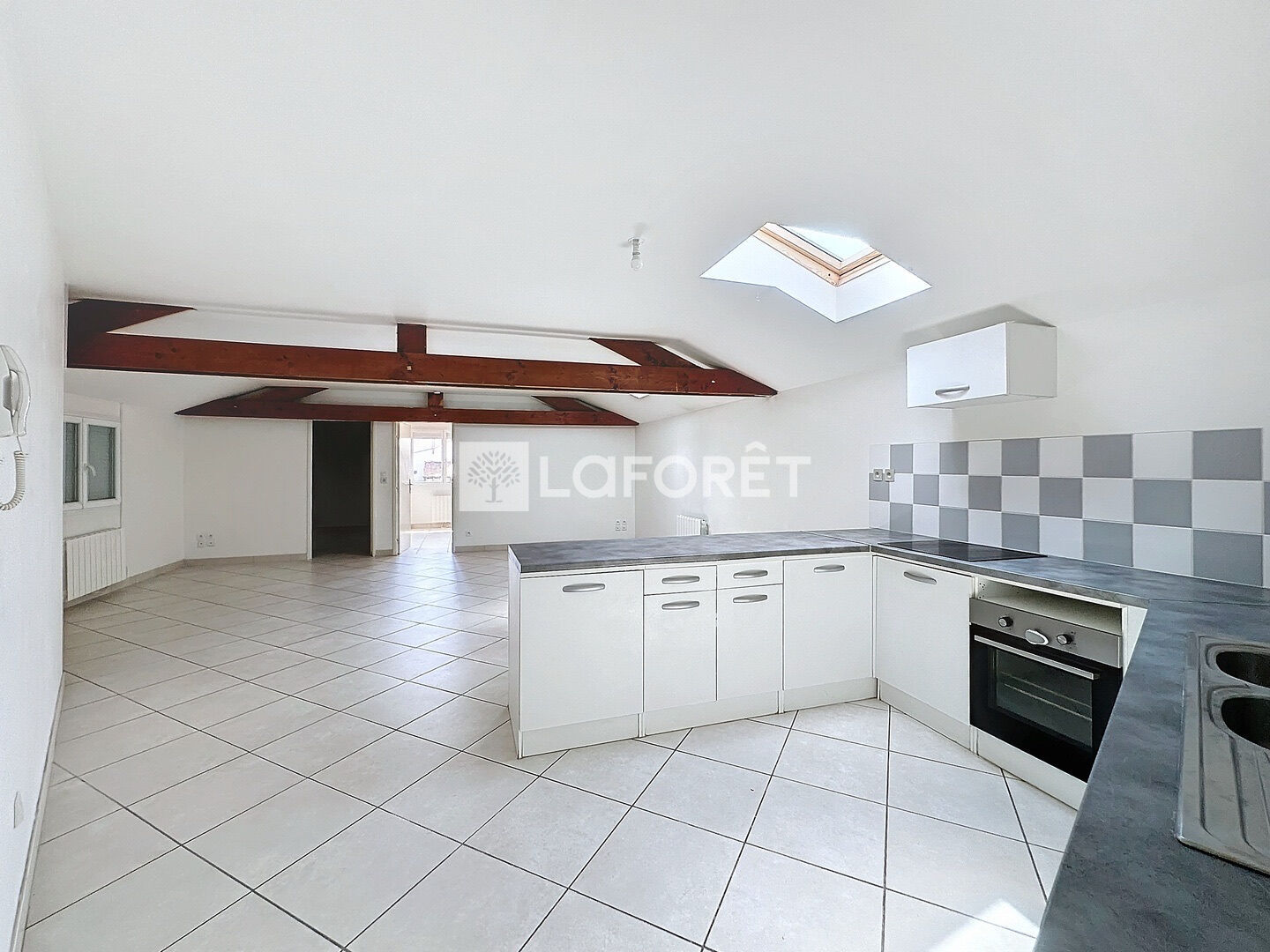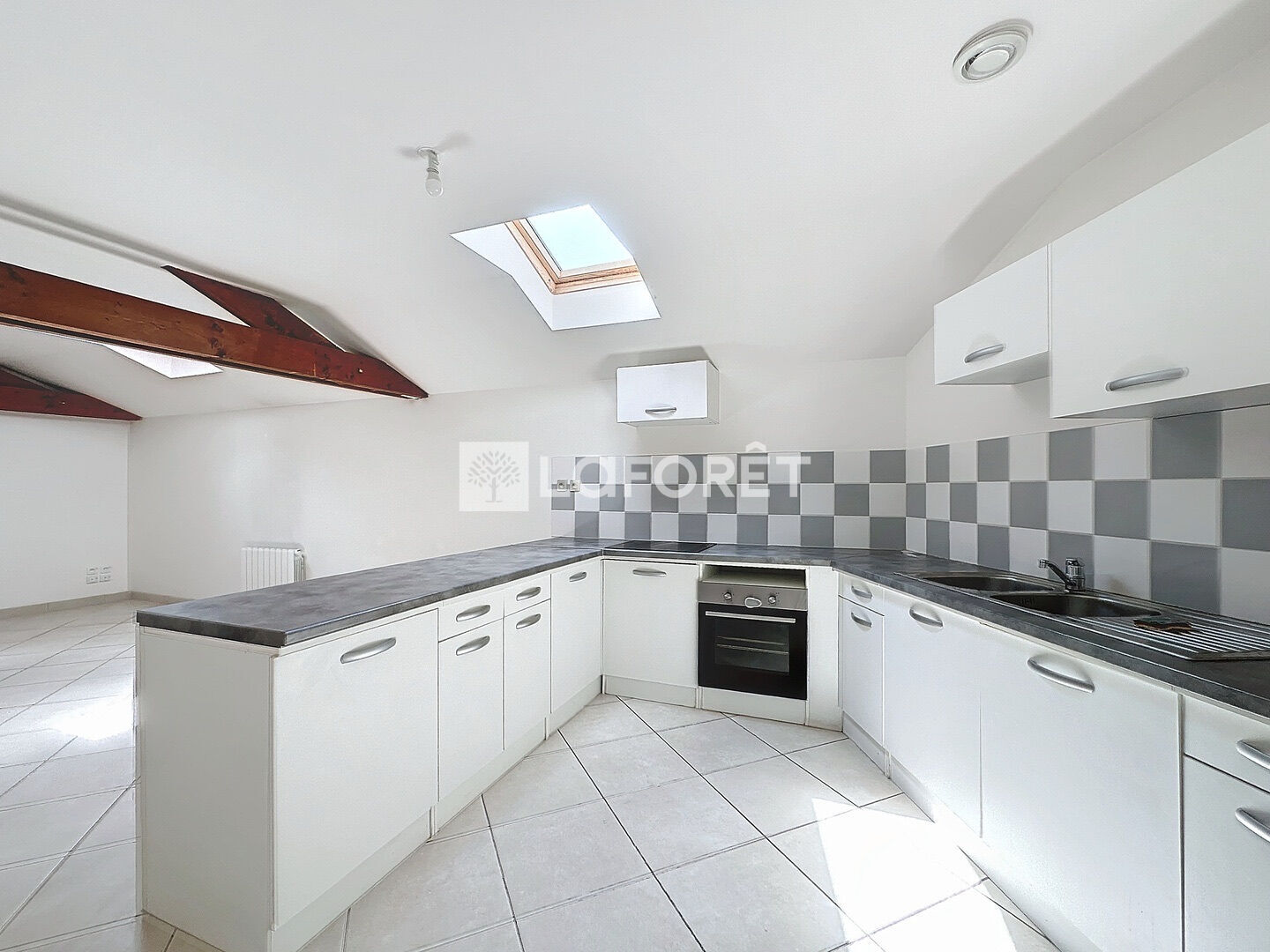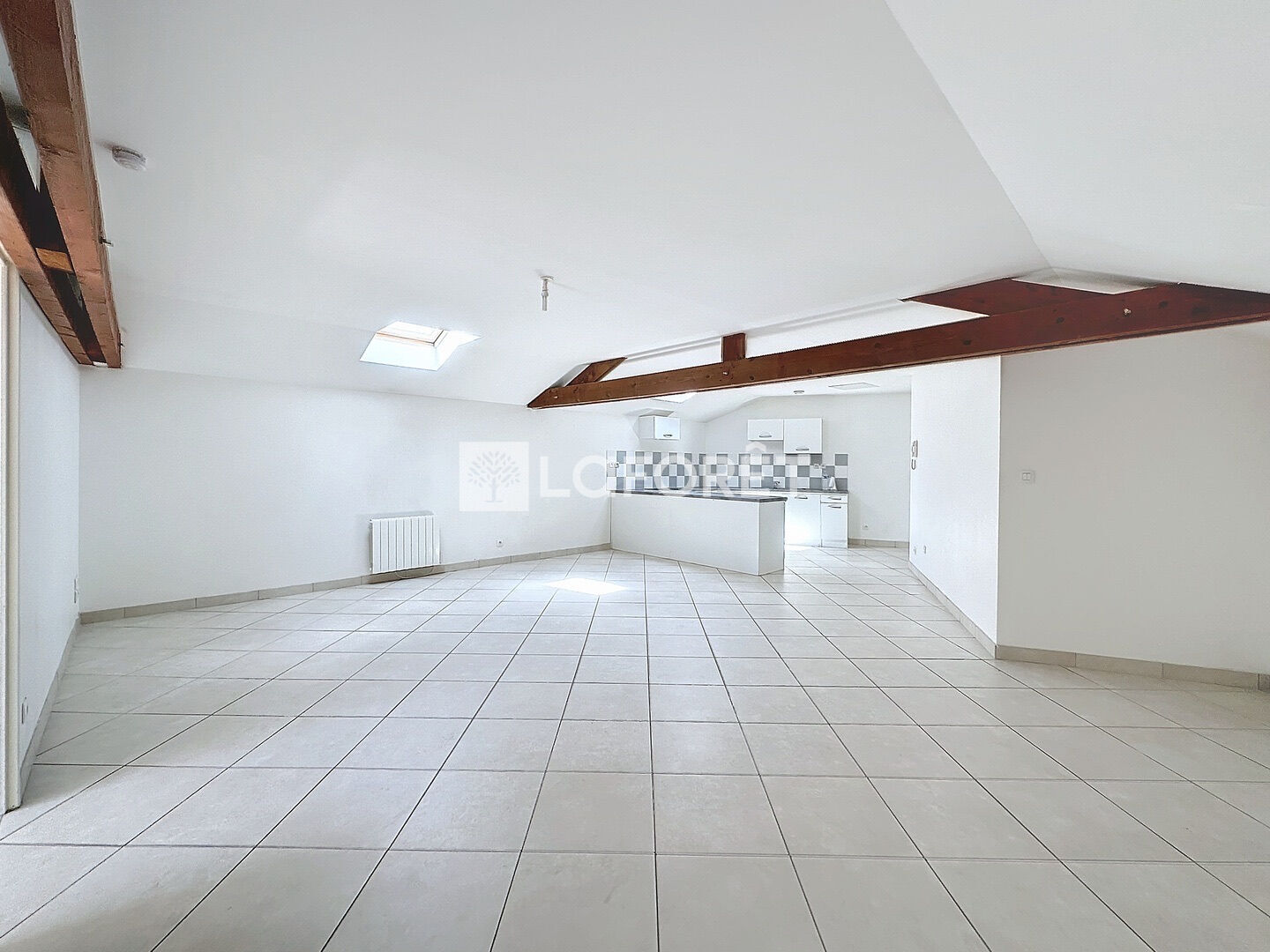 A l'étage ; une cuisine aménagée, un grand séjour, 2 chambres, une salle de