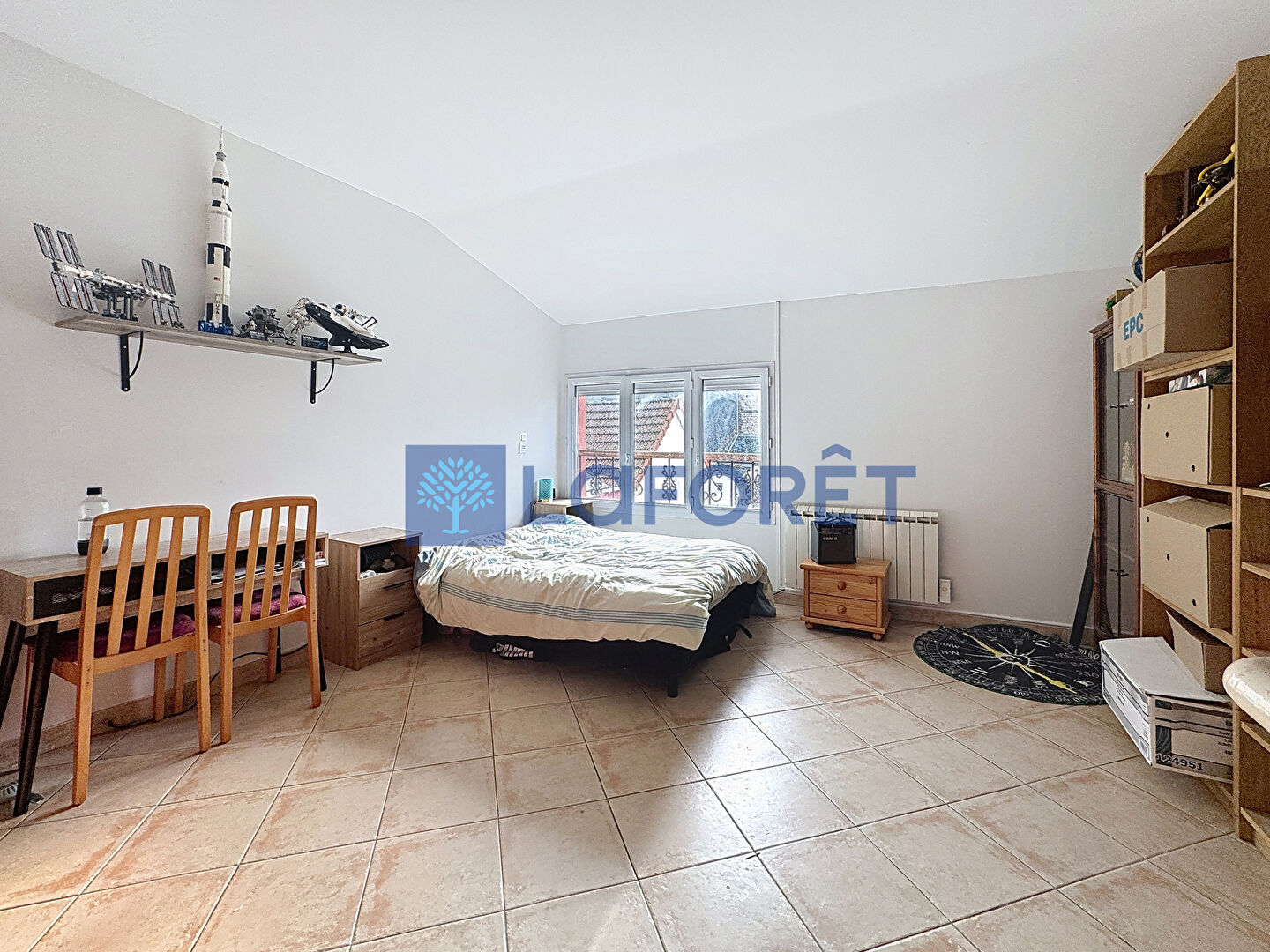 A l'étage, 1 chambre et une salle d'eau.