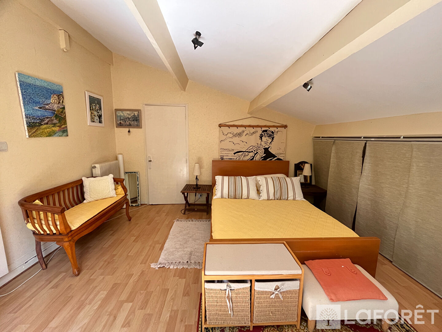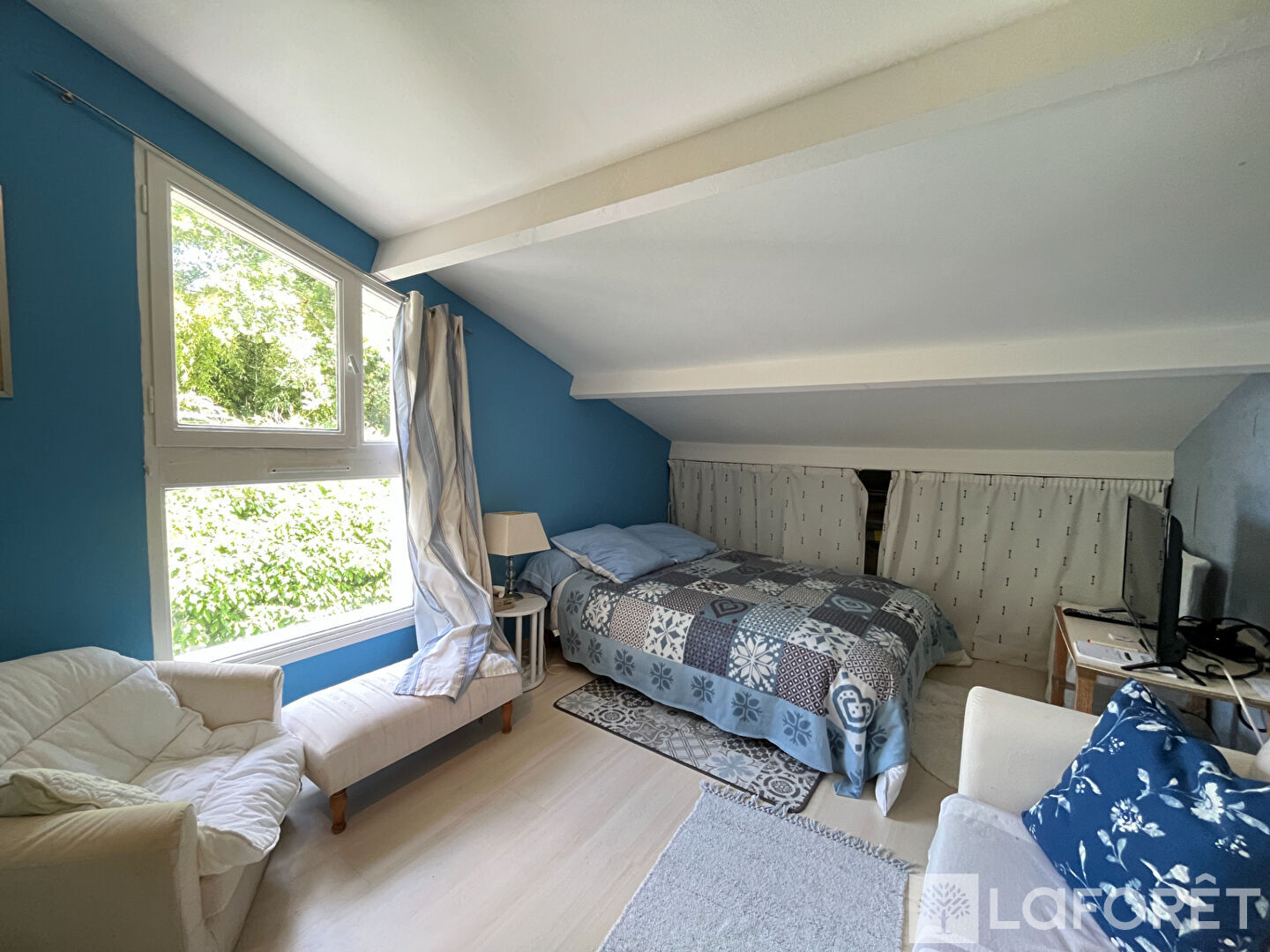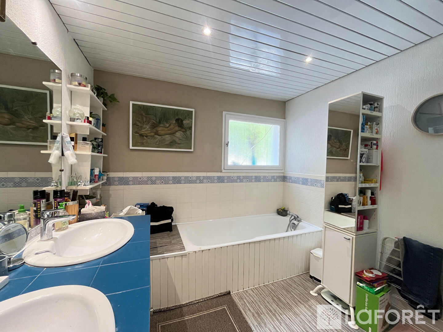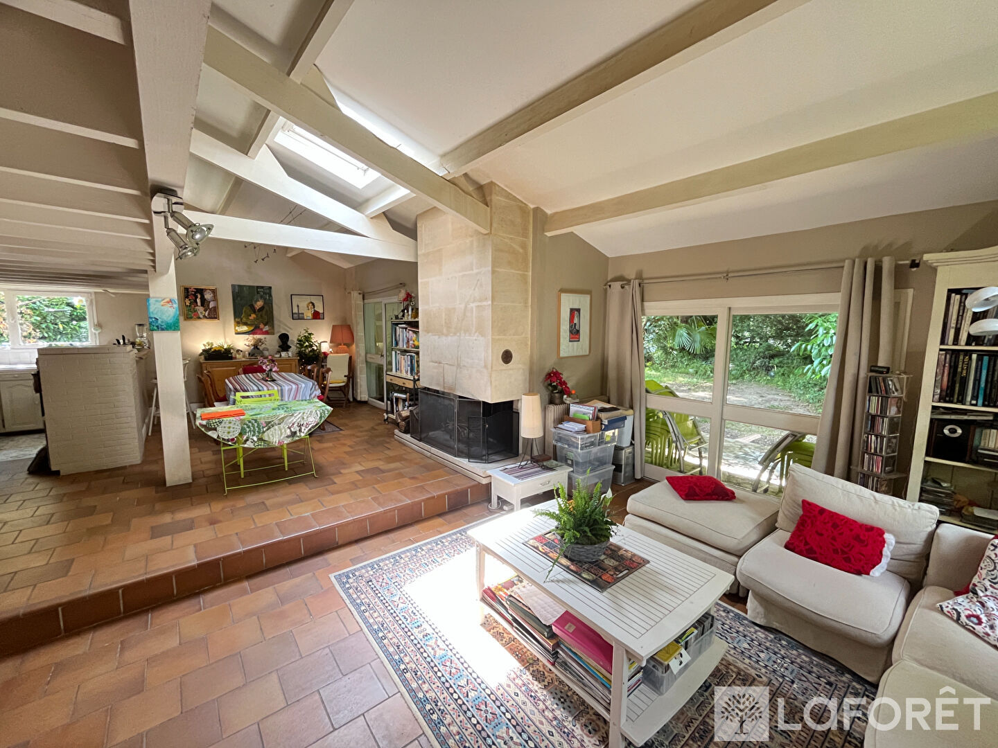 Dès l'entrée, vous serez séduit par le cachet de cette maison atypique : une pièce de vie lumineuse, sublimée par une belle hauteur sous plafond et une cheminée qui crée une atmosphère chaleureuse. La cuisine ouverte s'intègre parfaitement à cet espace convivial. Une buanderie attenante vient renforcer le côté pratique du quotidien.