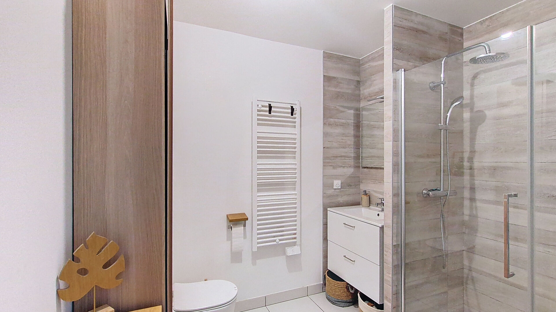 Il se compose d'un séjour lumineux avec cuisine équipée, ouvrant sur une loggia sans vis-à-vis, d'une chambre meublée avec placard intégré, d'une salle d'eau moderne et d'un cellier.