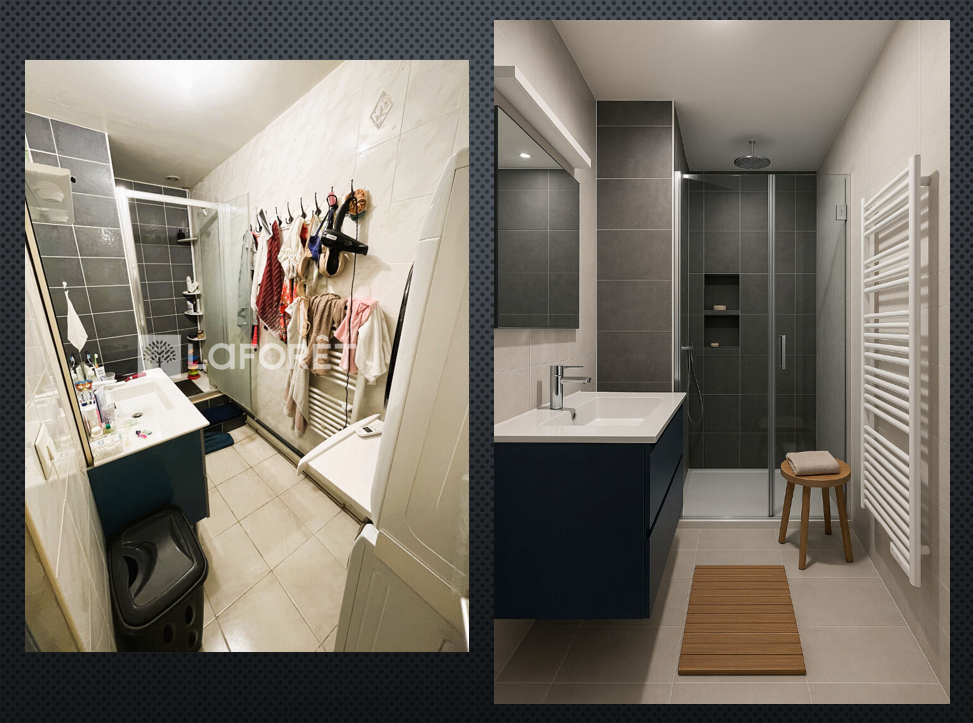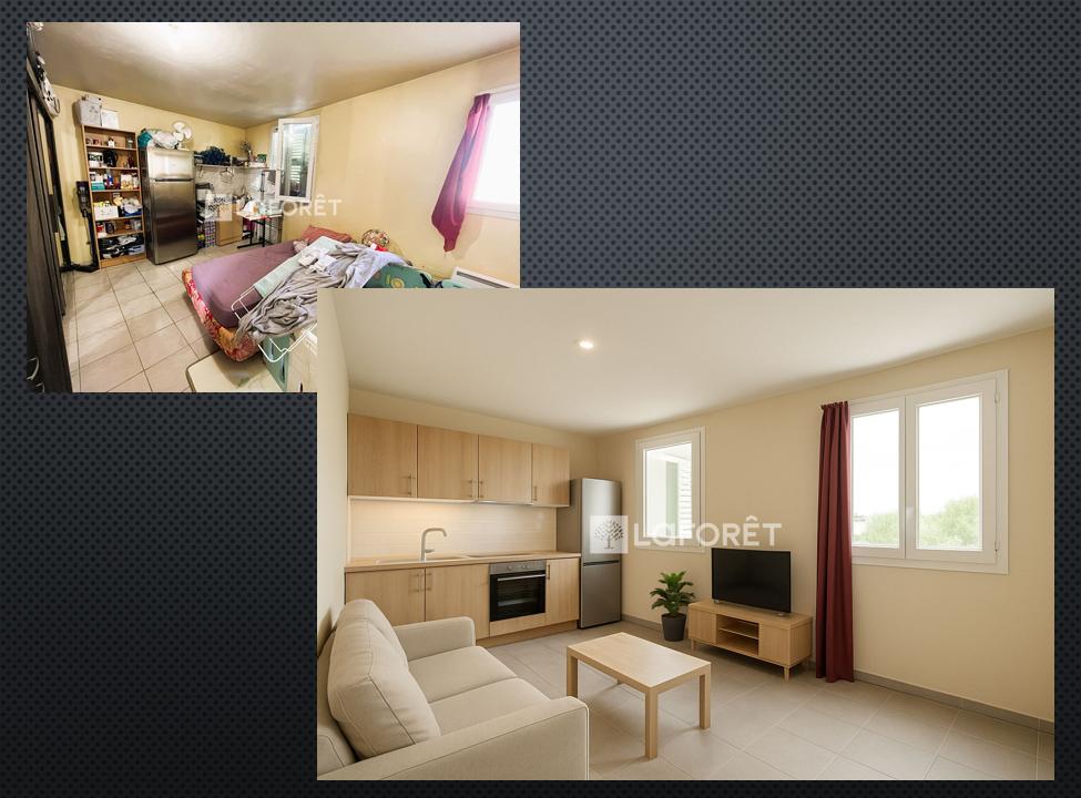 Le comparatif avant / après travaux de rénovation a été réalisé par IA et permet de vous montrer le potentiel de l'appartement.