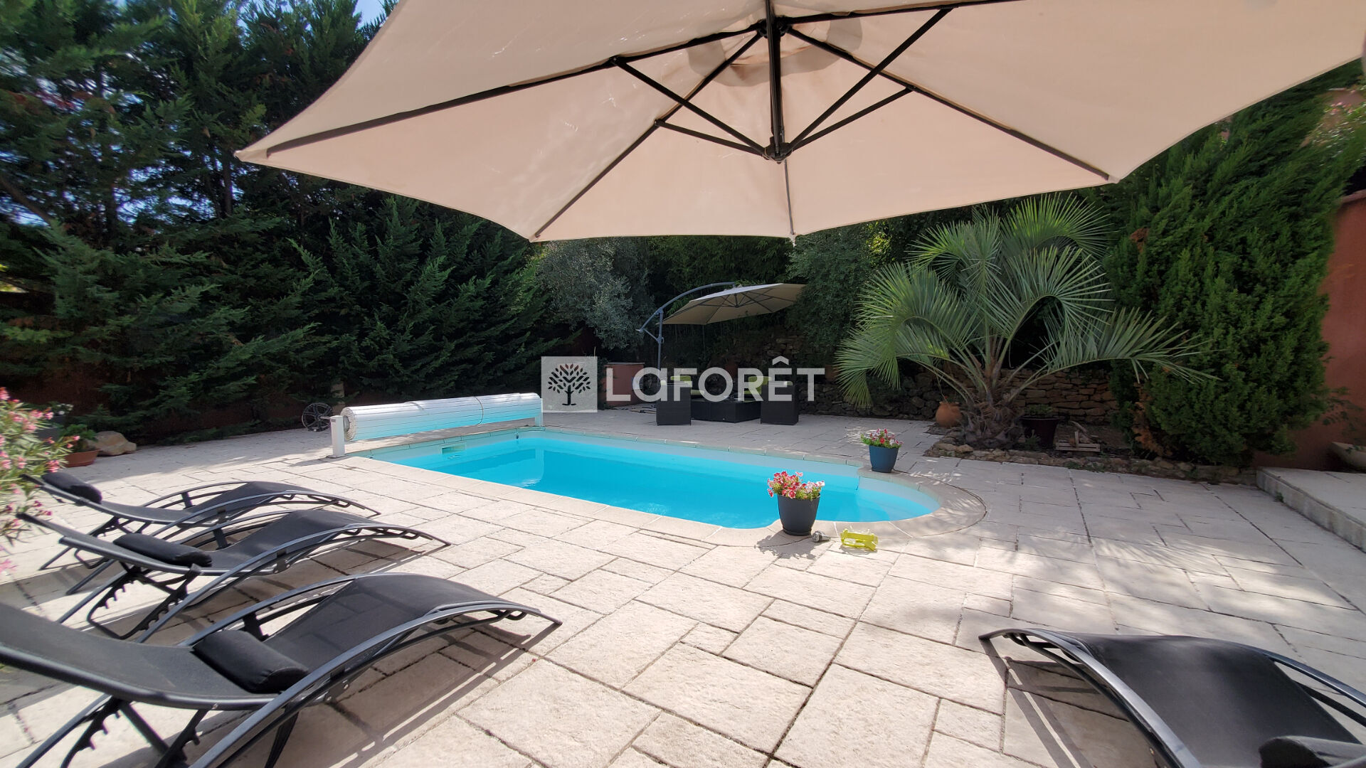 Edifiée sur un terrain plat, arboré et entièrement clôturé, elle dispose d'une piscine et d'un cabanon.