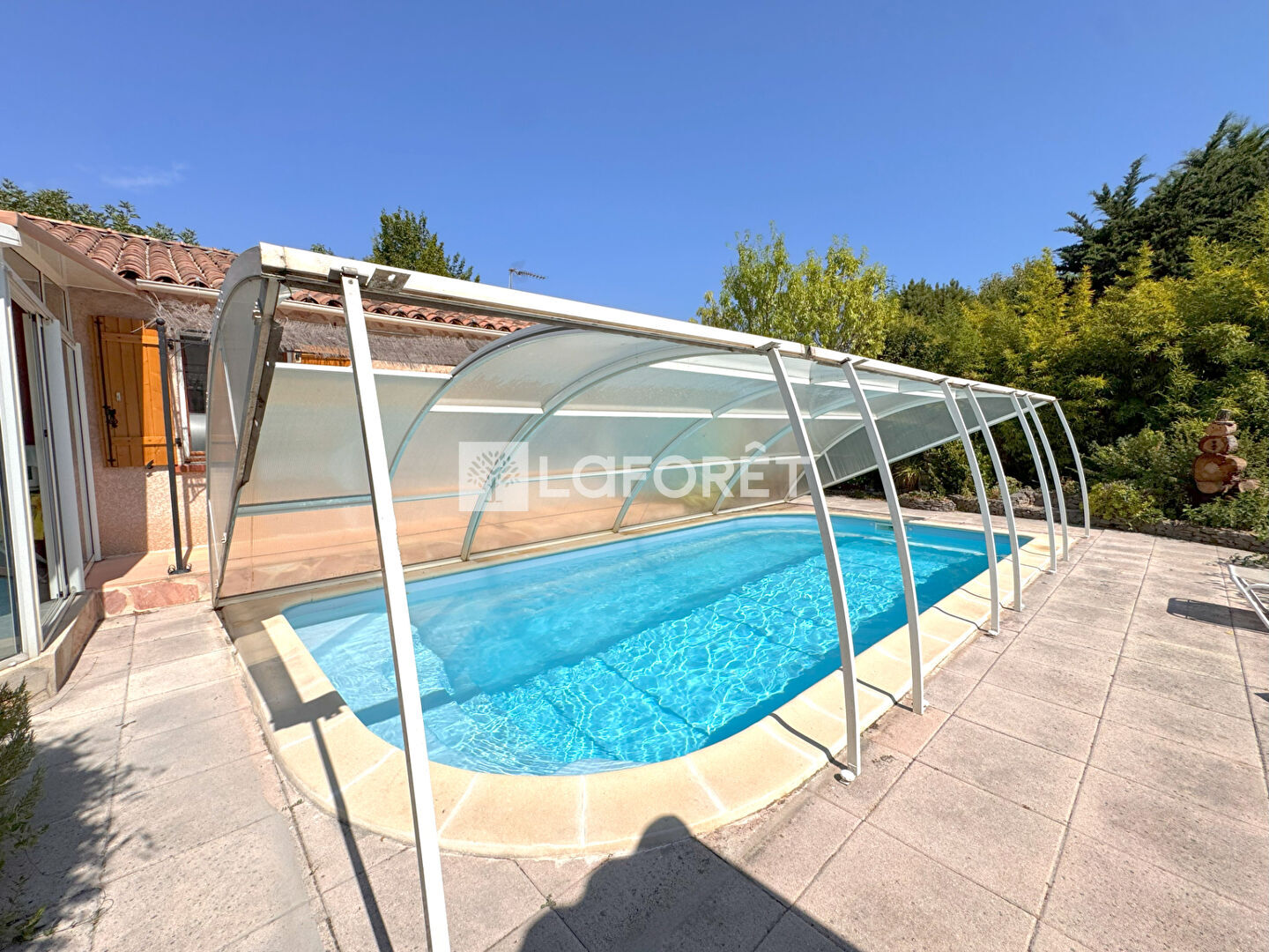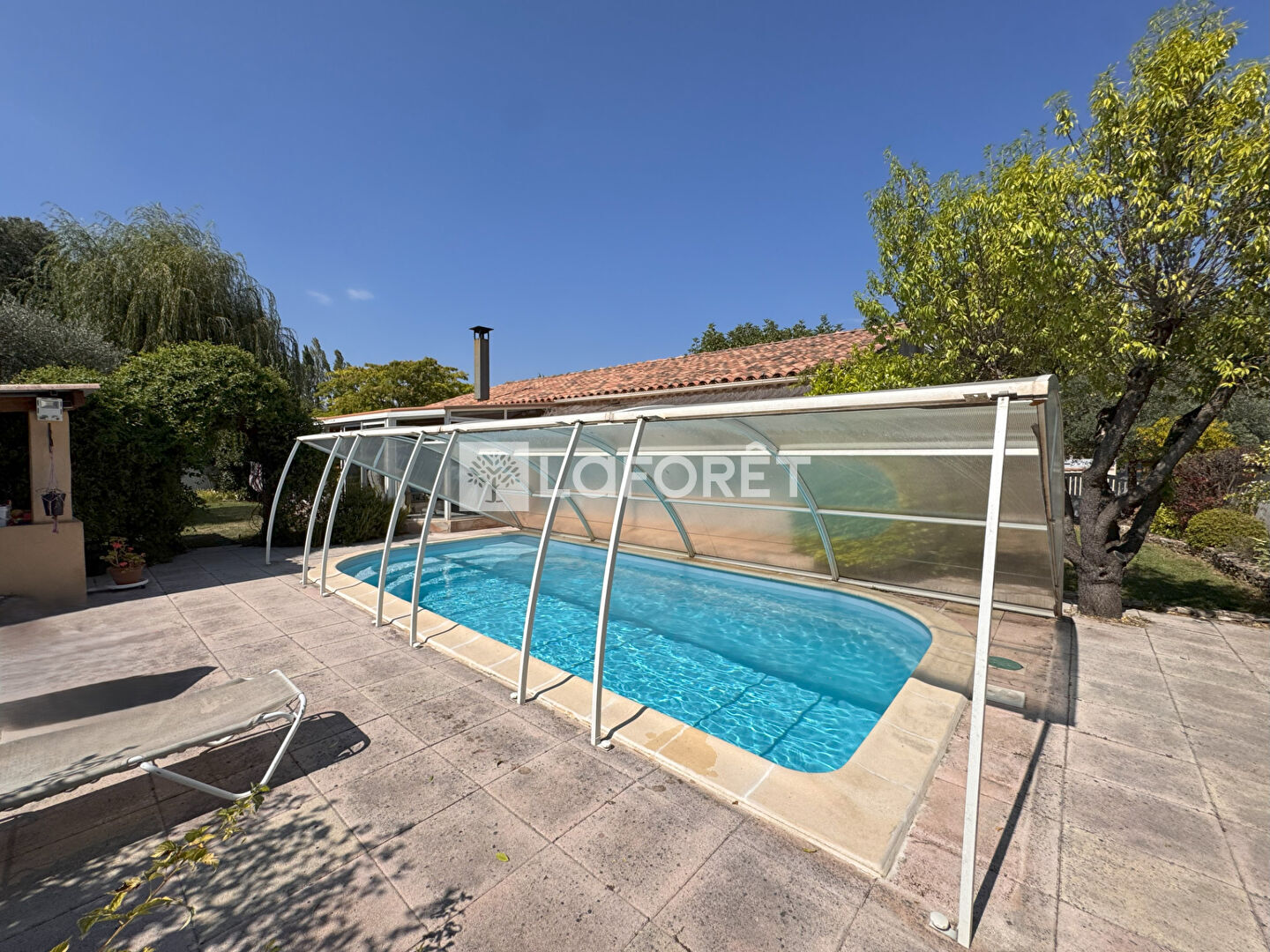 La maison est équipée d'un garage, un atelier, une piscine fermable qui permet de prolonger la saison de baignade et un pool house.
