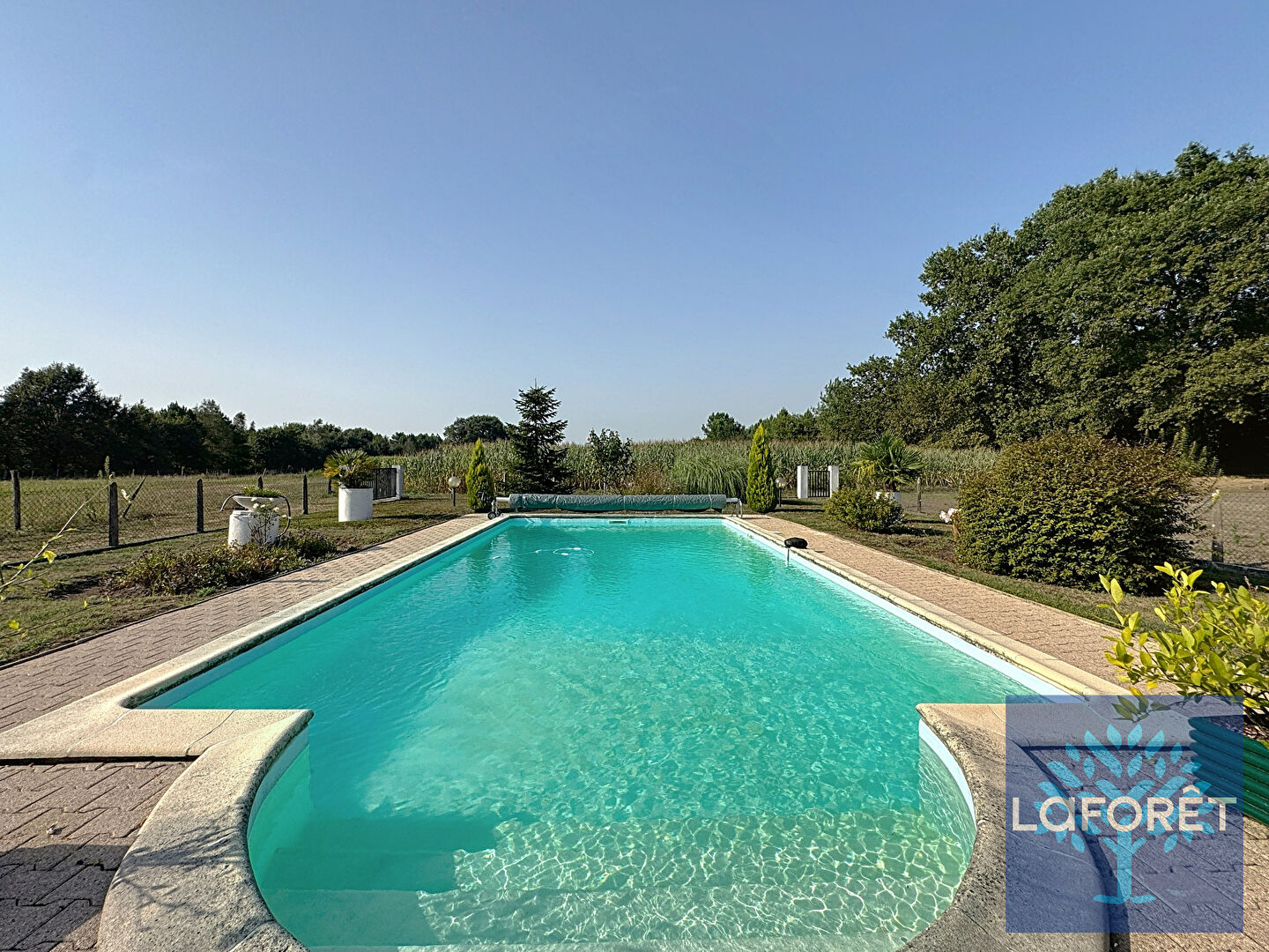 Dans le jardin entièrement clos et arboré, vous profiterez d'une grande piscine avec sa terrasse.