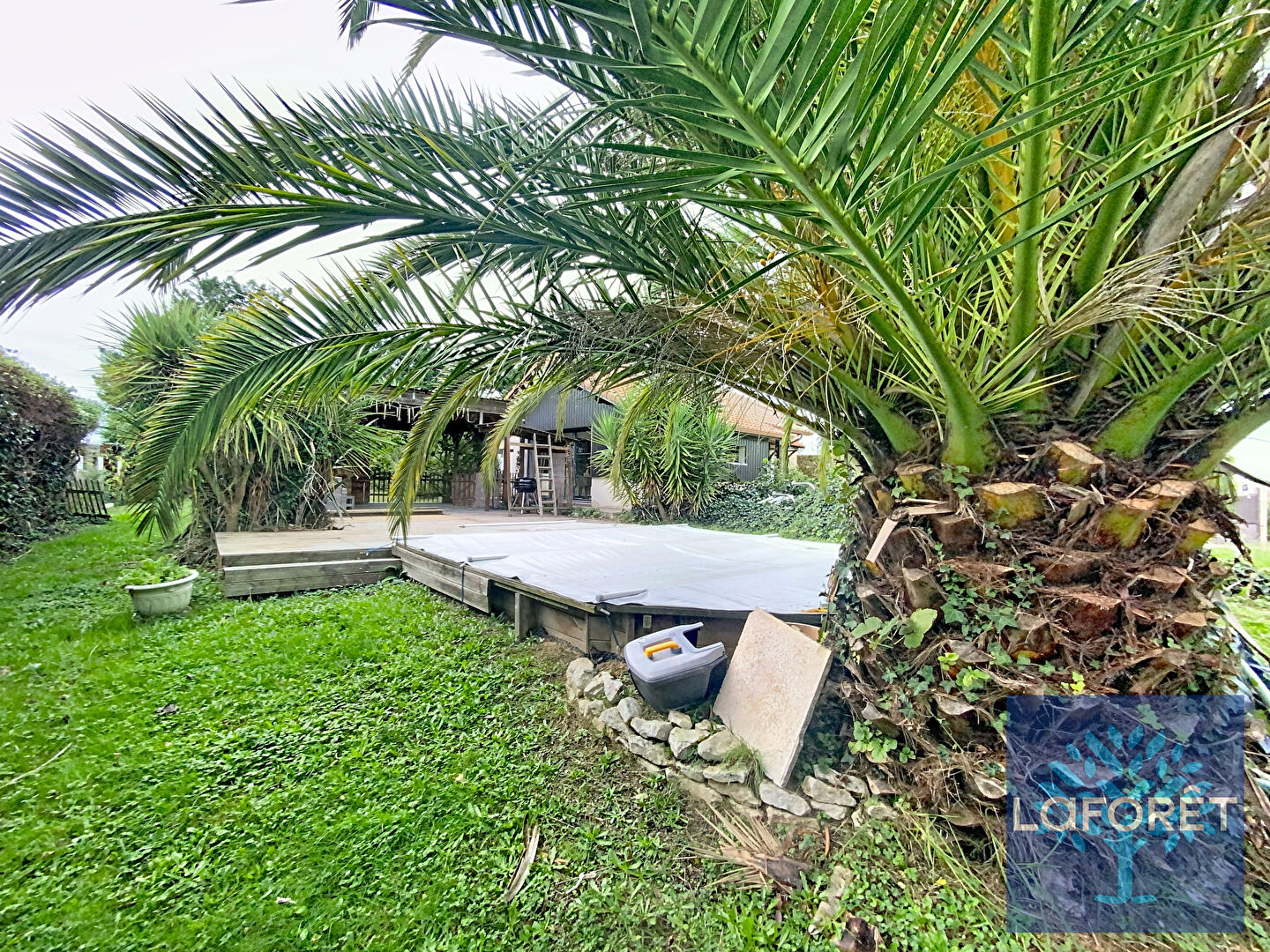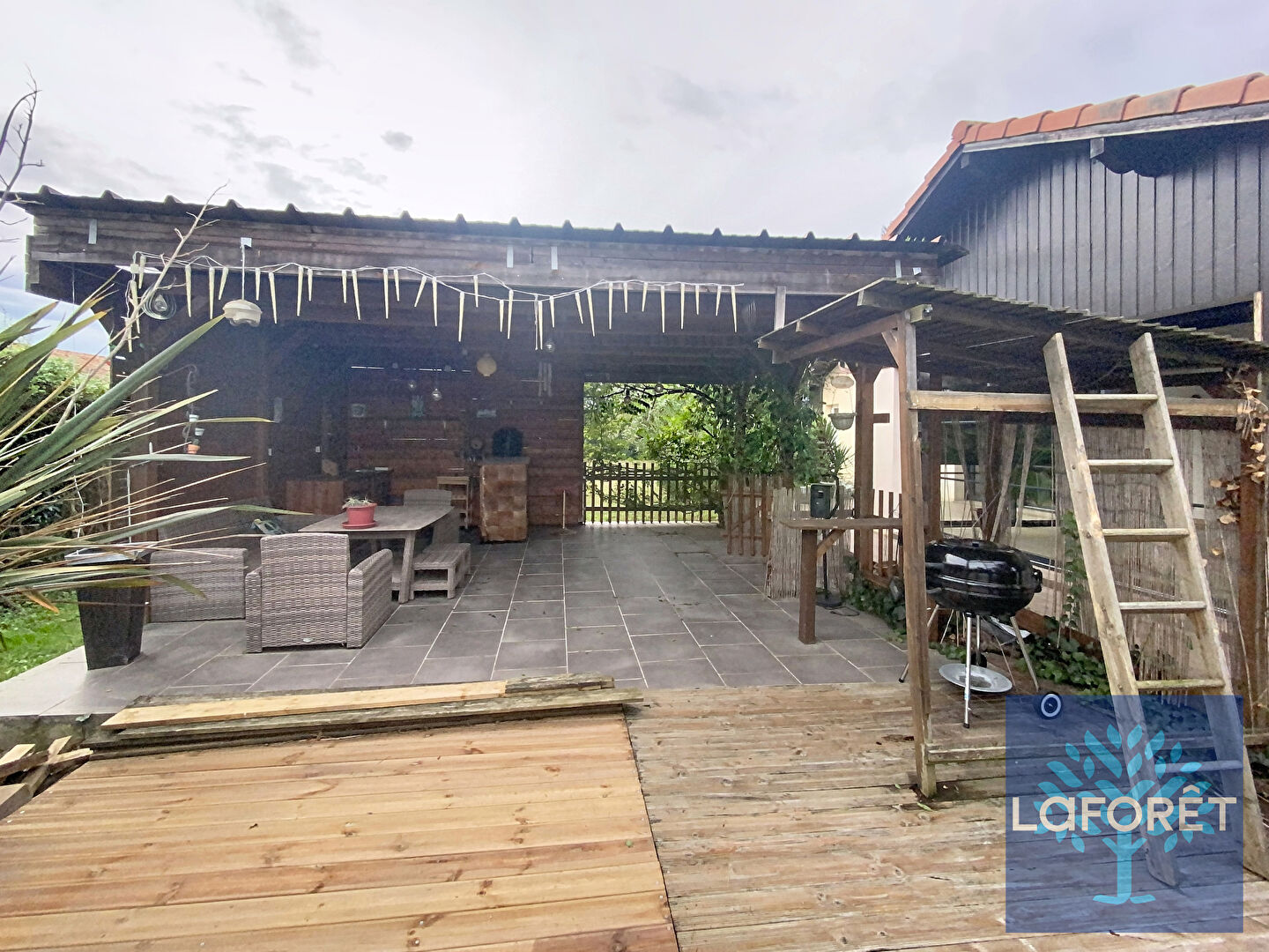 Un garage indépendant en cours d'aménagement, parfait pour créer un logement supplémentaire.