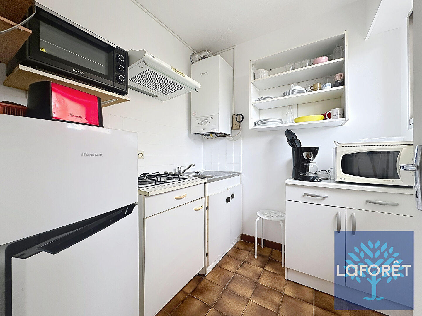 Le logement comprend une pièce de vie lumineuse, une cuisine indépendante, une salle de bain, des toilettes séparées, ainsi qu'une dépendance pouvant servir de chambre, idéale pour accueillir un espace nuit confortable.