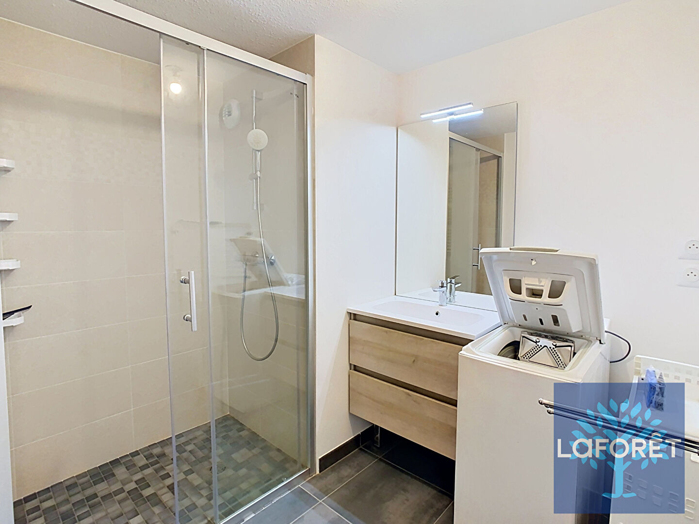 Pensé pour allier confort et modernité, il se compose d'un séjour lumineux offrant un bel espace de vie, d'une cuisine moderne entièrement équipée, d'une chambre spacieuse, d'une salle d'eau avec machine à laver, ainsi que de WC séparés pour plus de praticité.