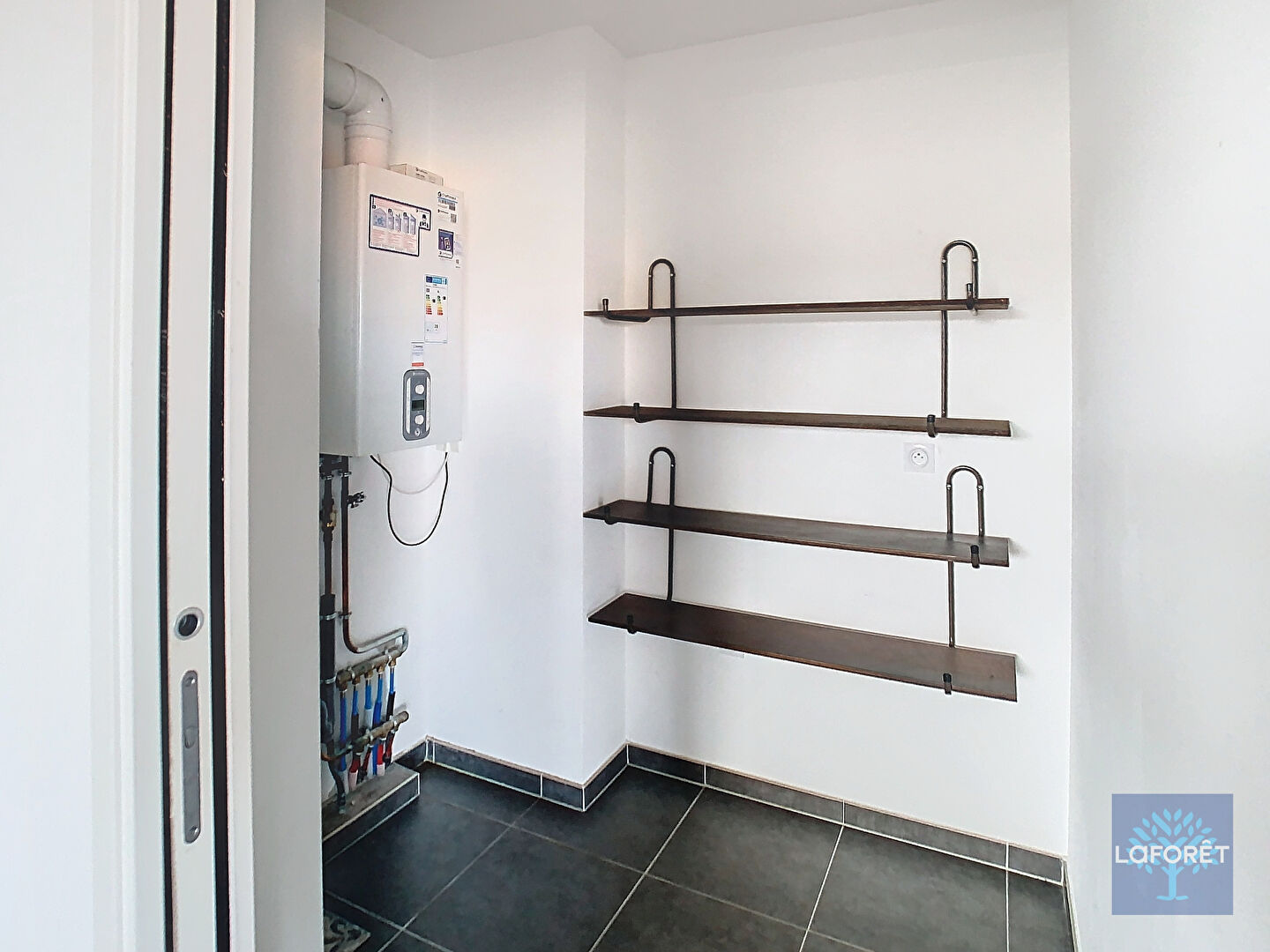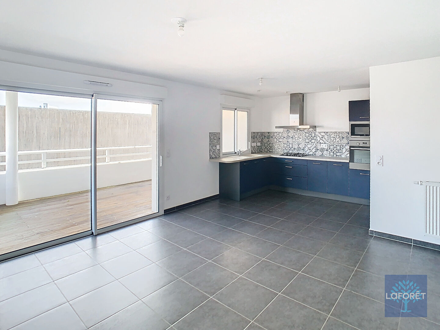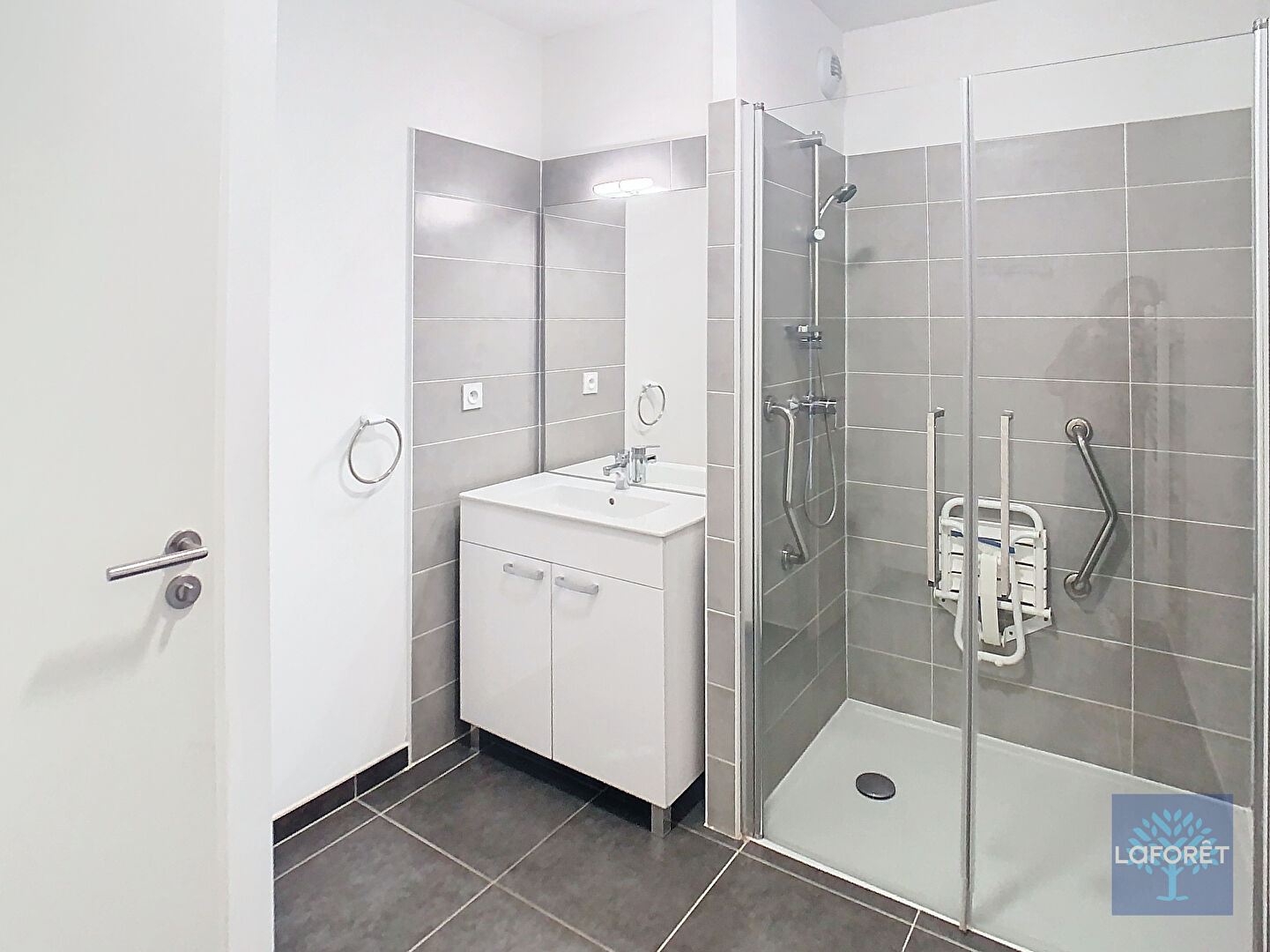 Situé au 2eme étage d'une résidence sécurisée, il comprend une entrée, un séjour-cuisine aménagée et équipée (four, micro-ondes, plaques de cuisson gaz, lave-vaisselle) donnant sur un balcon terrasse de 15 m², une buanderie, deux chambres dont une avec dressing fermé et balcon attenant, une salle de douche et un WC séparé.