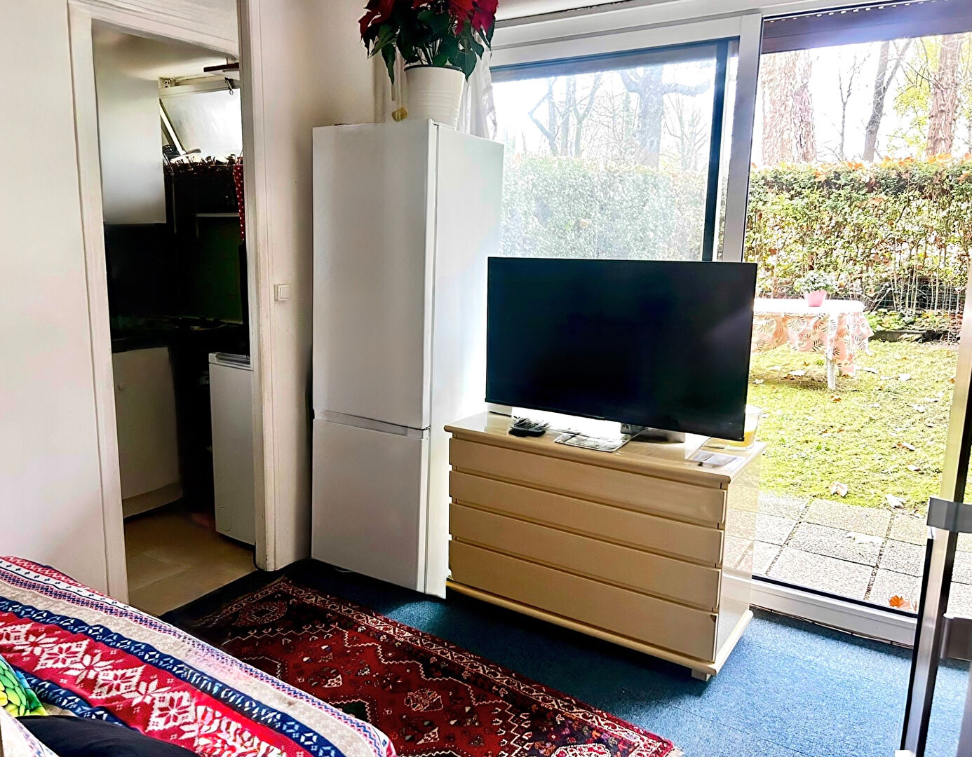 Dans un écrin de verdure, ce studio avec un jardin de 34 m² sans vis-à-vis, exposé plein sud, offre un séjour de plain-pied sur la terrasse et le jardin, doté d'une baie vitrée triple vitrage neuve, ainsi qu'une cuisine indépendante, une salle d'eau et des WC séparés.