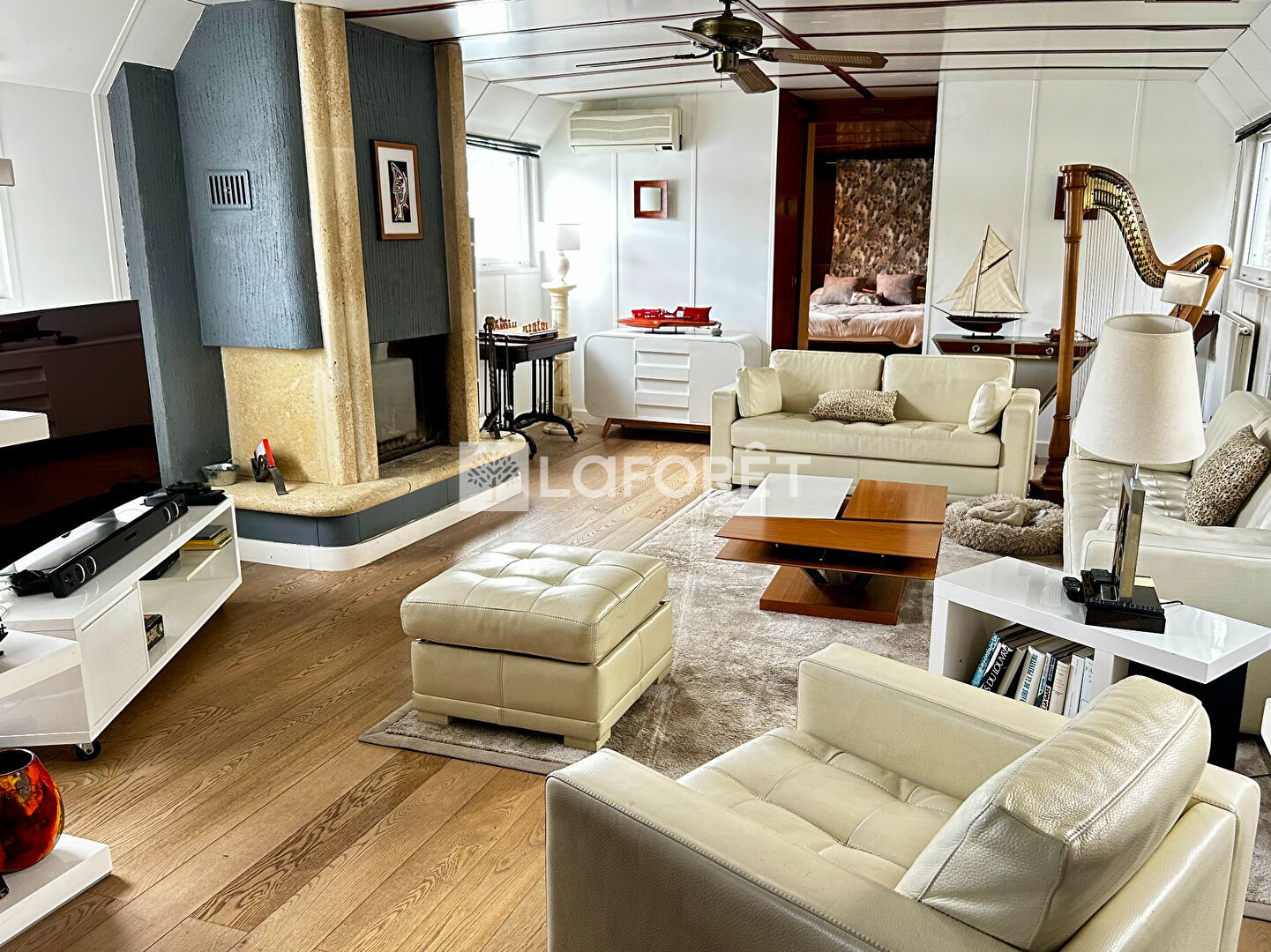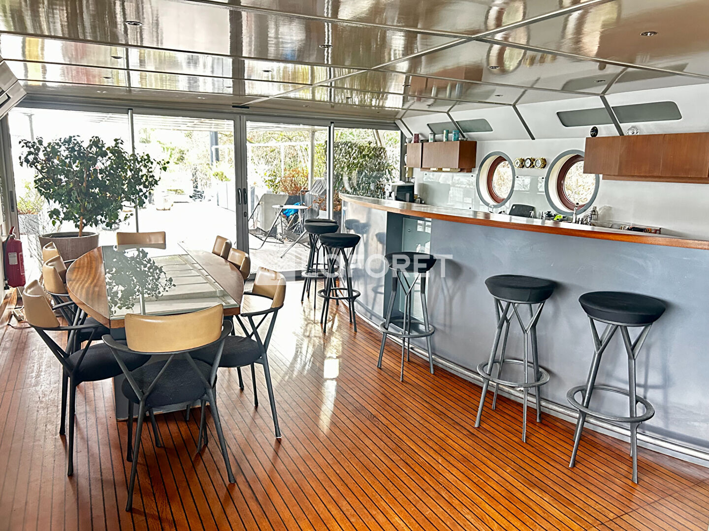 Saint-Cloud / Les Coteaux, Amarrée à une berge calme, face au Bois de Boulogne, cette péniche d'environ 200 m² offre un cadre de vie unique, alliant volumes, luminosité et sérénité. Sur le pont principal, vous découvrirez une cuisine ouverte sur un 1er séjour, prolongé de plain-pied par une terrasse plein sud de 60 m². Une chambre avec bureau et salle de bains complète ce niveau. Le pont inférieur accueille un second espace de vie avec séjour, cheminée, cuisine ouverte, un bureau, une chambre, une salle de bains ainsi qu'une suite parentale avec sa propre salle de bains. Des places de stationnement en accès libre sont disponibles en face du quai. Un bien rare et atypique, à découvrir sans tarder. Passez par Laforêt !