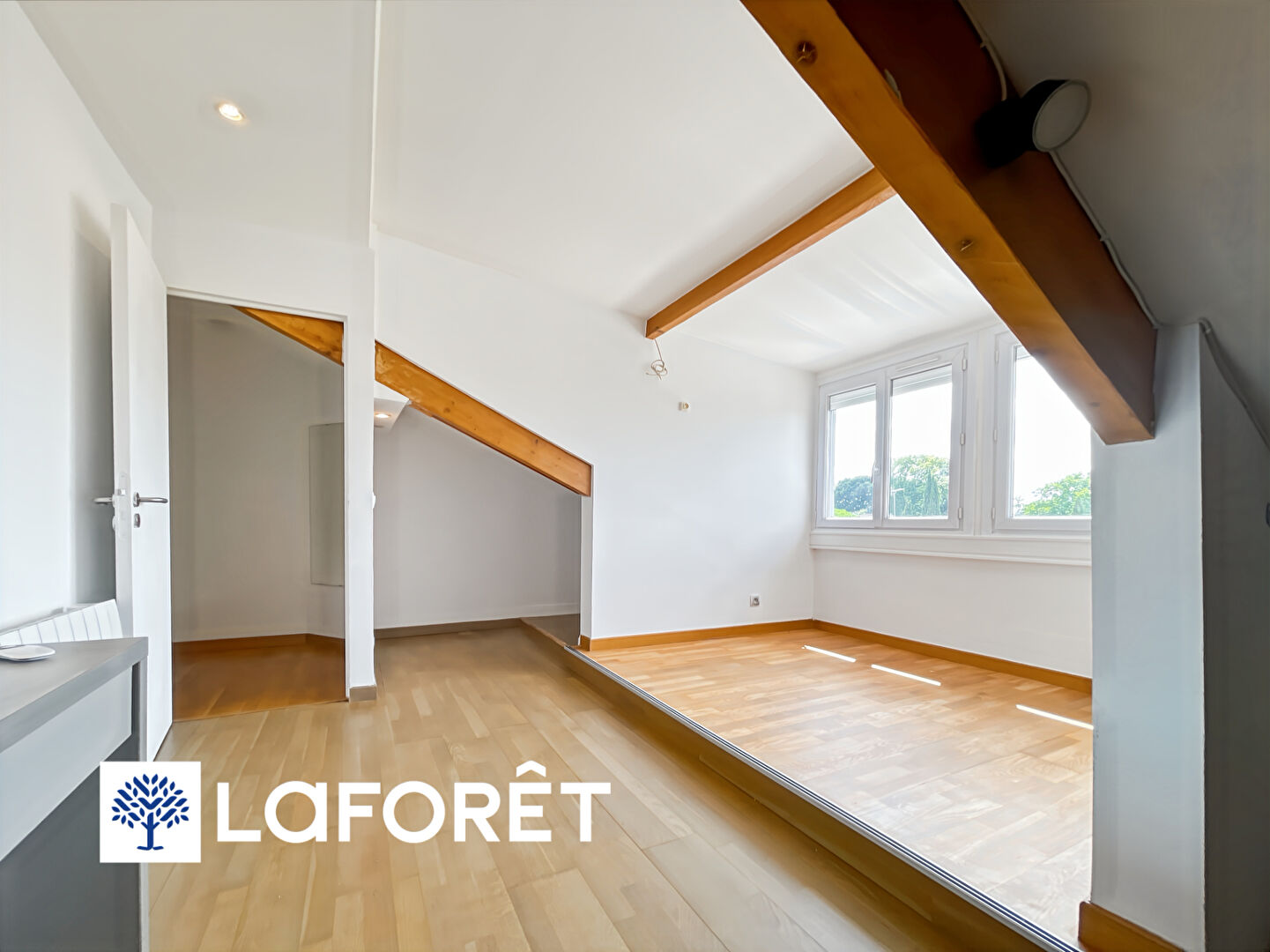 APPARTEMENT EN DUPLEX comprenant : Au rez-de-chaussée : Un hall d'entrée avec placards. Au premier étage : Séjour donnant sur une terrasse d'environ 14 m² avec poêle à granulés, cuisine aménagée et équipée, cellier, wc suspendu, chambre avec salle d'eau. Au deuxième étage dans les combles : Une chambre, un bureau possibilité de faire une chambre, salle de bains avec wc, dégagement.
