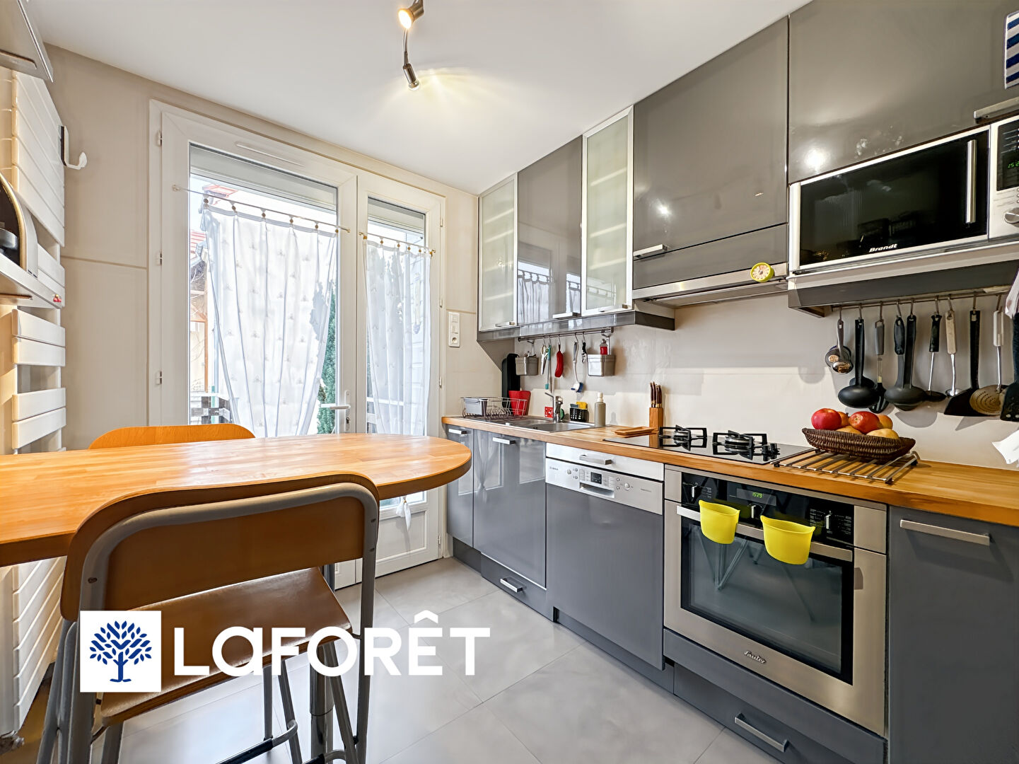 À l'intérieur, vous trouverez à l'étage une cuisine indépendante équipée donnant sur une terrasse, un séjour spacieux et lumineux avec un accès sur un balcon, trois chambres (dont deux avec rangement), une salle de bains ( avec baignoire et douche) et un WC séparé.
