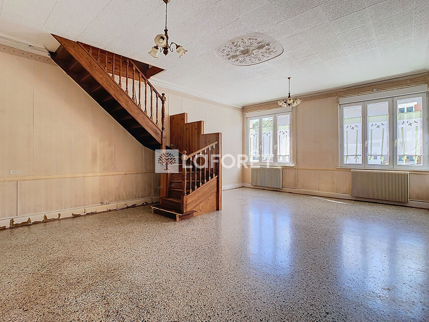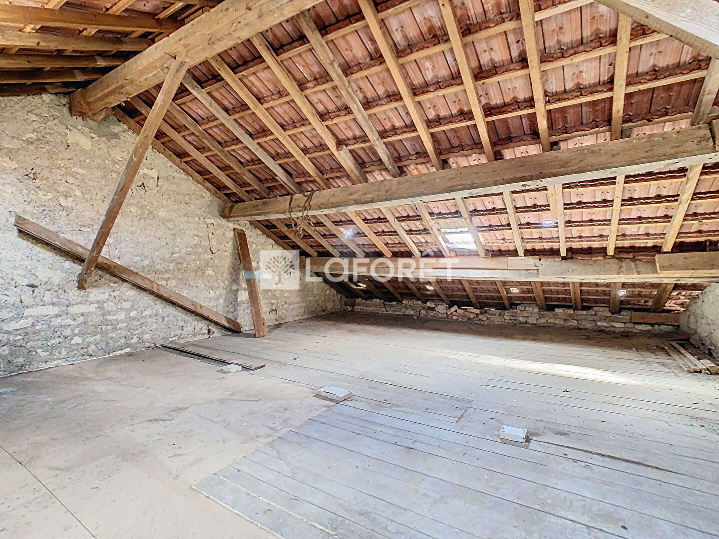 Spacieuse pièce de vie de 45 m², cuisine, salle de bains et WC. A l'étage : Un grand palier desservant 3 chambres et un WC indépendant.