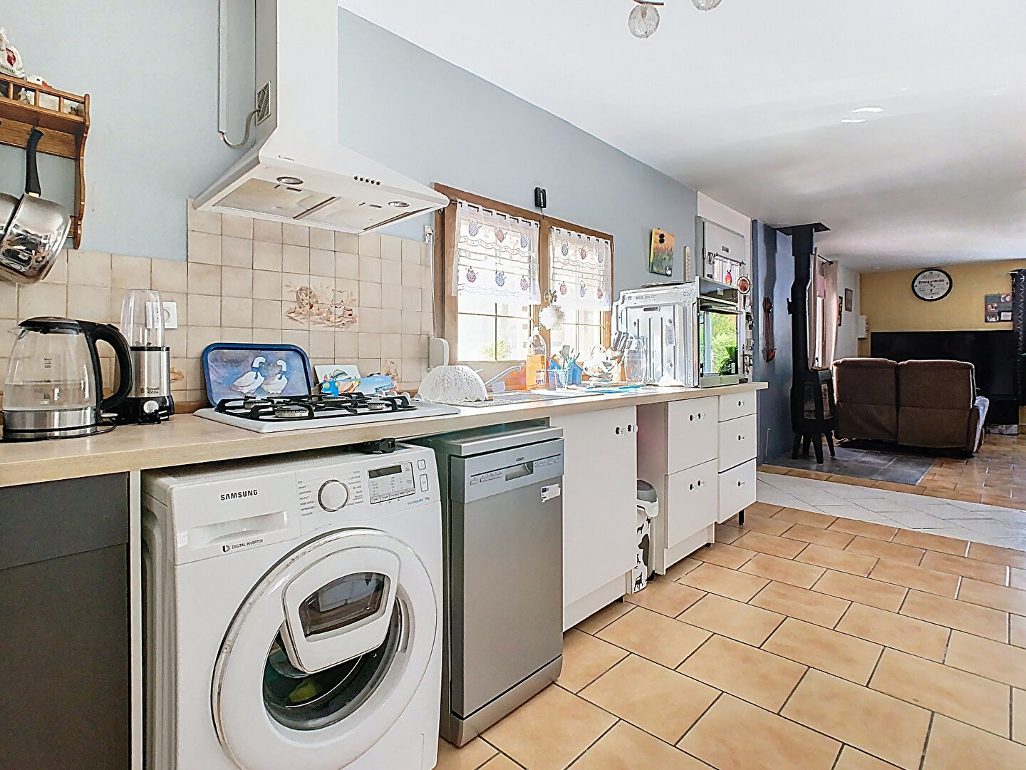 Cette maison se compose d'une véranda, d'une cuisine fonctionnelle ouverte sur un salon-séjour, d'une chambre avec coin dressing, d'une salle de bains avec toilettes, ainsi que d'une seconde chambre. Le chauffage est assuré par un poêle à bois, et l'isolation par l'extérieur garantit un confort thermique optimal (DPE : classe D).