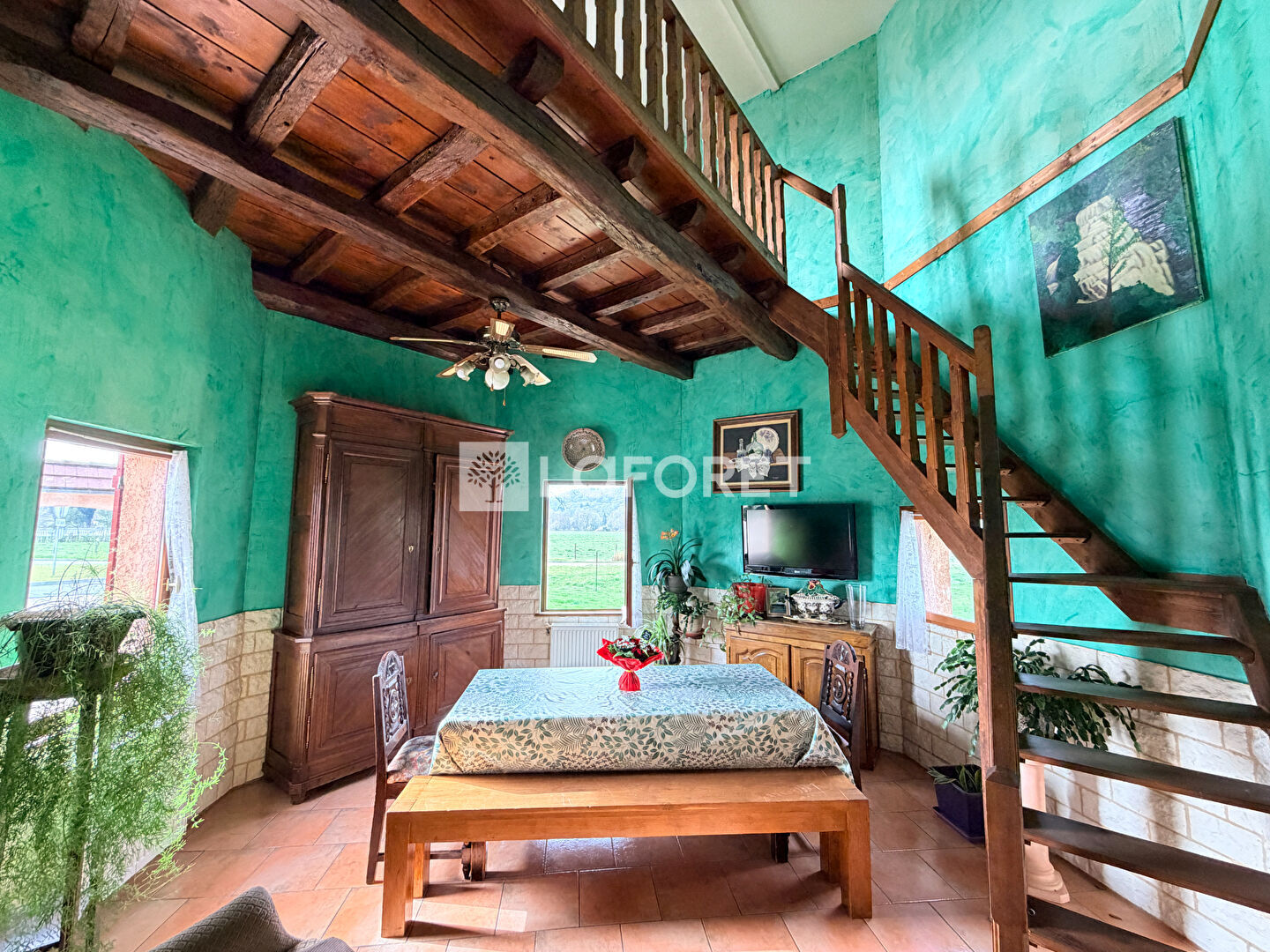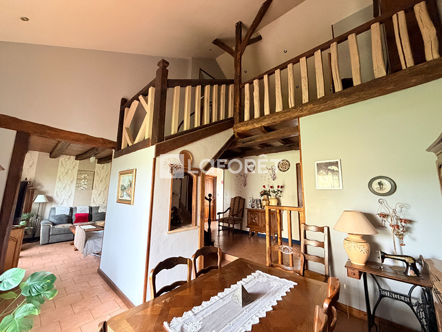 L'étage propose deux mezzanines apportant volume et caractère à l'ensemble : l'une surplombant la salle à manger et la seconde située dans la tour au-dessus du séjour, offrant des espaces supplémentaires pouvant être aménagés selon vos besoins. L'étage dessert également les chambres ainsi qu'un second WC.