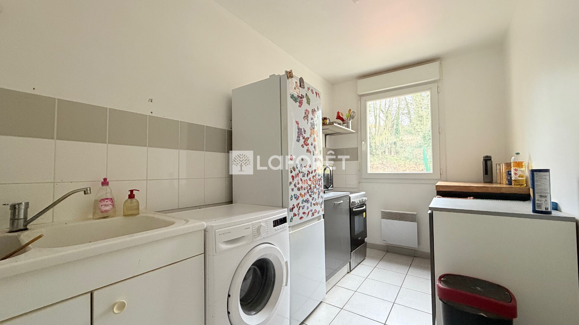 Situé au 1er étage, il offre un agencement pratique comprenant une entrée avec placard, une cuisine, un séjour ouvrant sur un balcon, deux chambres avec rangements intégrés, une salle de bains avec baignoire, un cellier et des toilettes séparées.