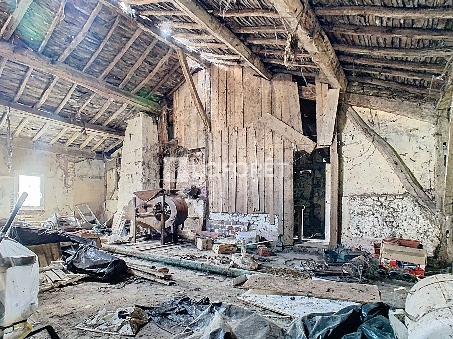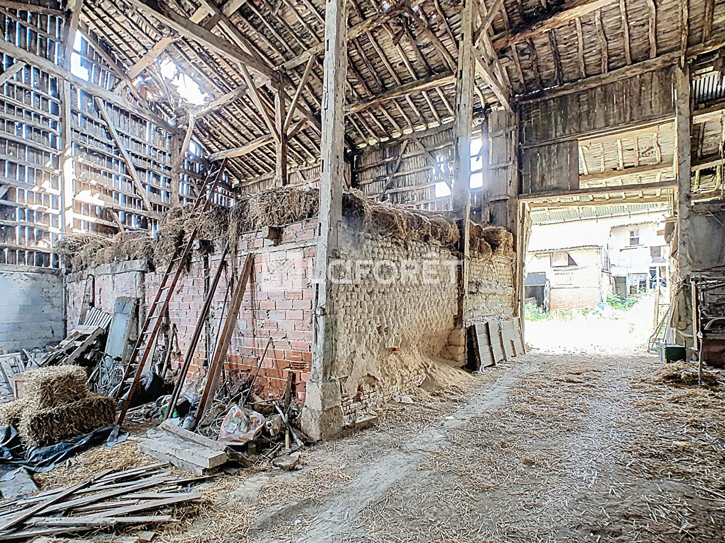 En plus d'une surface au sol de 83 m², vous disposez d'un grenier de plus de 100 m² aménageable. A l'extérieur, vous trouverez une grange, elle aussi à restaurer au niveau de la toiture, ainsi que plusieurs remises. Ce bien est accessible par deux entrées depuis la rue et offre un potentiel intéressant. Il est édifié sur un terrain d'environ 1027 m².