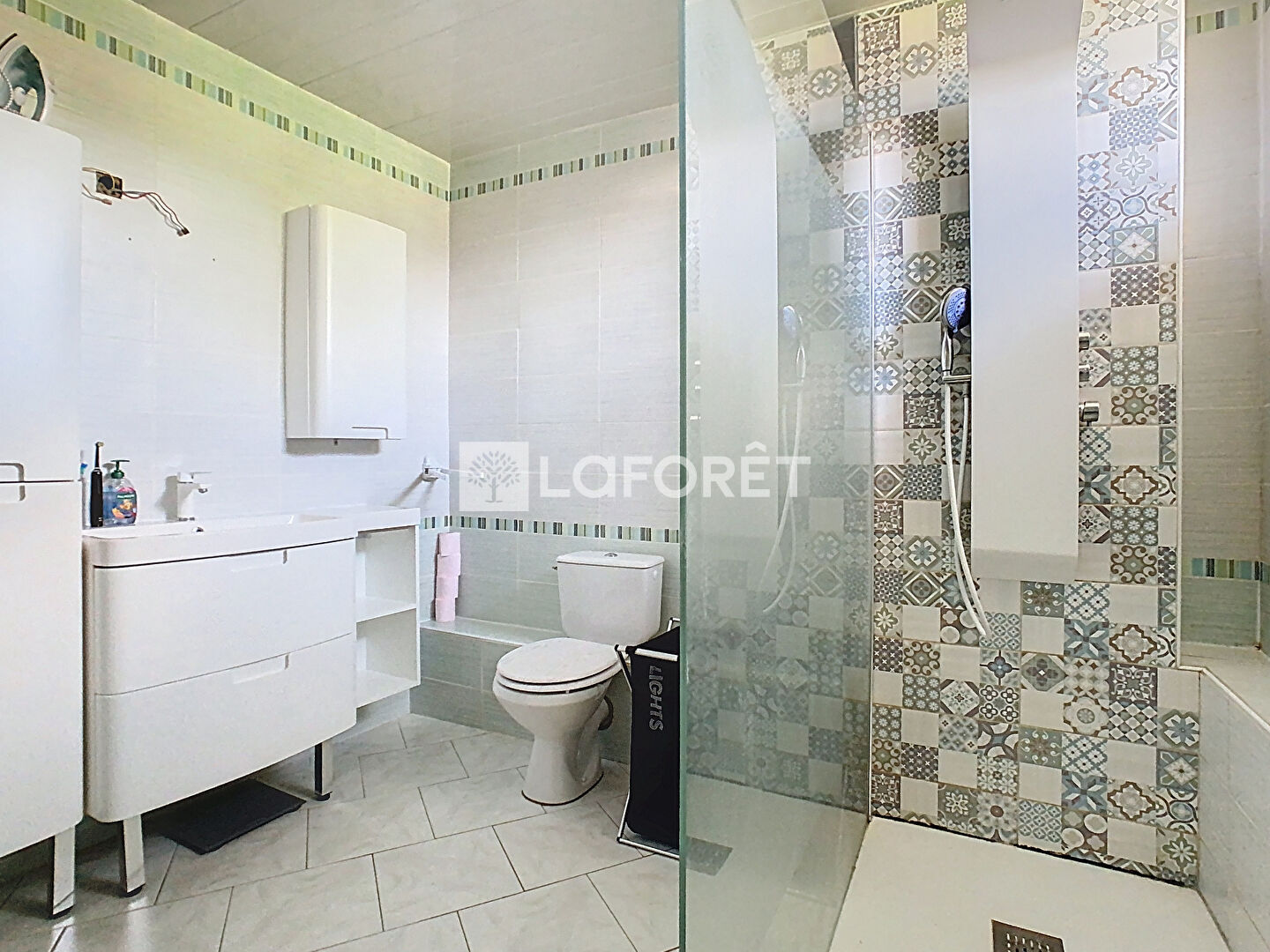 Vous découvrirez une cuisine aménagée et équipée, installée en 2022, ainsi qu'une pièce polyvalente pouvant faire office de chambre ou de bureau. Un dégagement mène à un vaste salon-séjour lumineux de 35 m², agrémenté d'une grande baie vitrée donnant accès à une terrasse ensoleillée. Le rez-de-chaussée comprend également des toilettes indépendants et une lingerie.