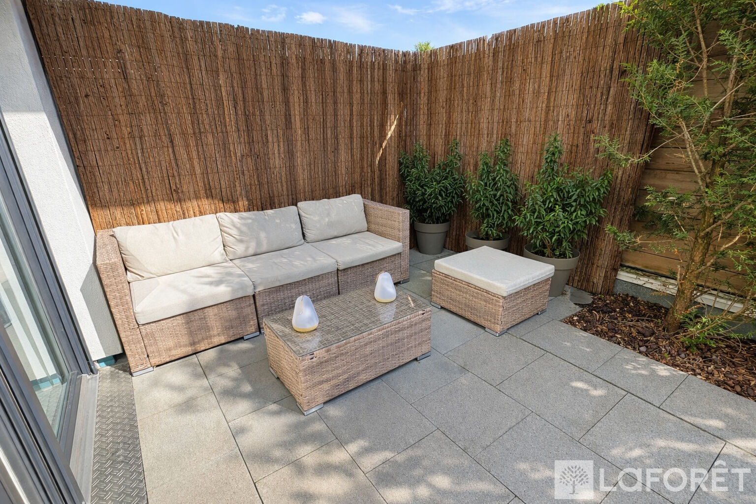 Le séjour, bien agencé, s'ouvre sur une spacieuse terrasse de 29 m², véritable prolongement de l'espace de vie, idéale pour profiter pleinement de l'extérieur dans un cadre paisible.