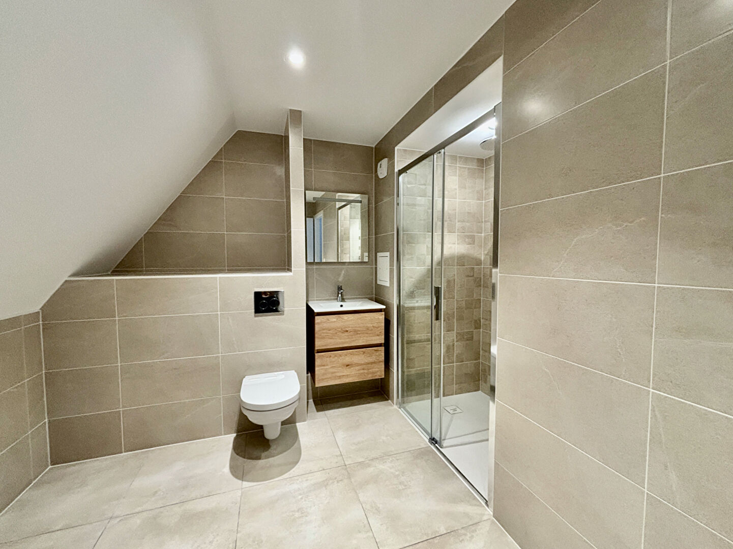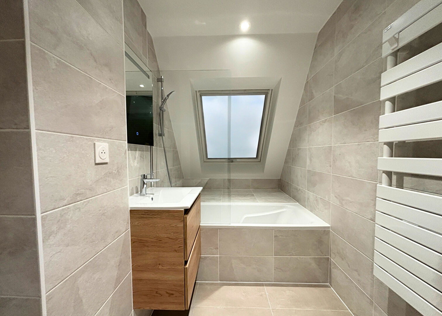 Le chauffage au sol et l'eau chaude sont assurés par une pompe à chaleur collective air/eau.