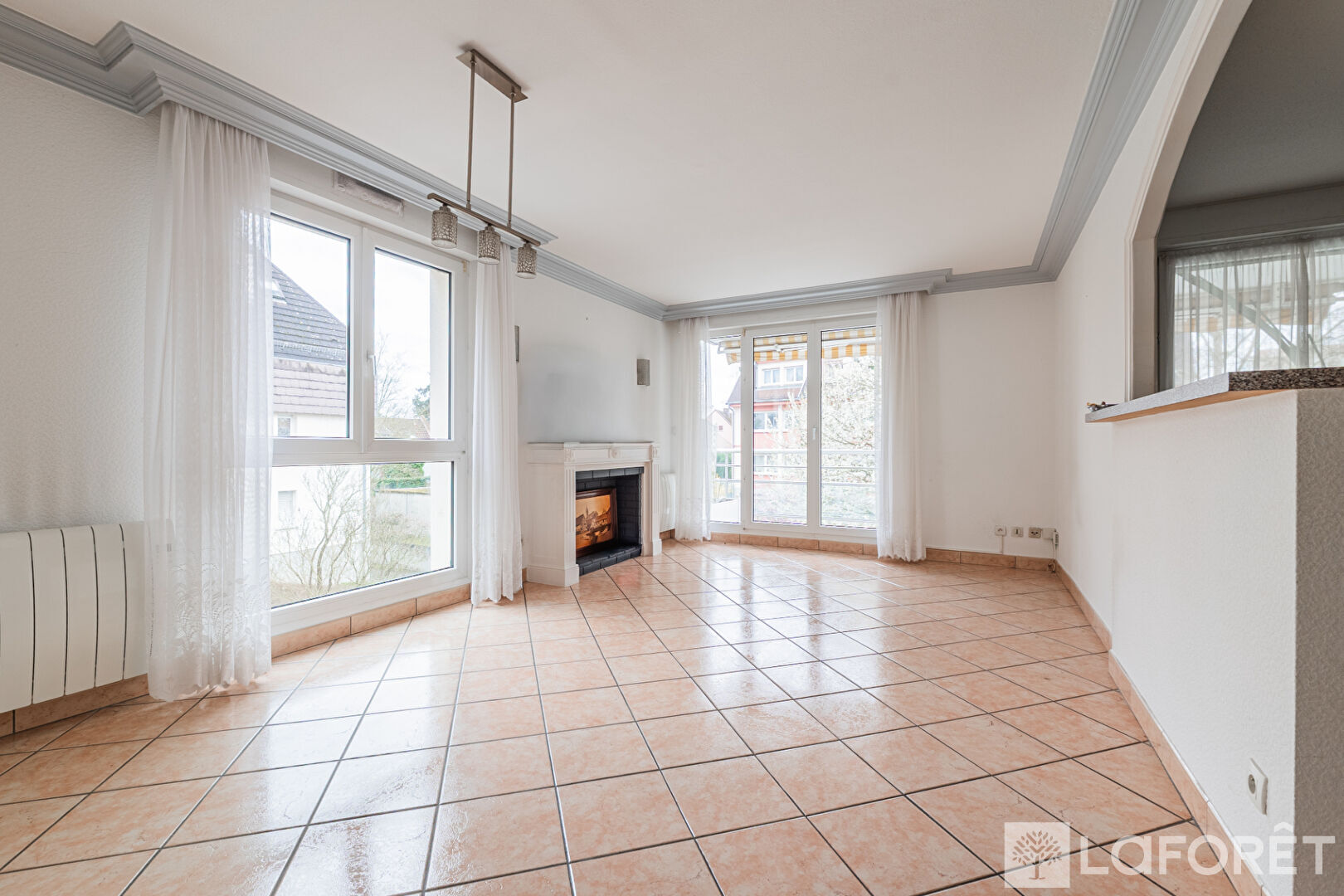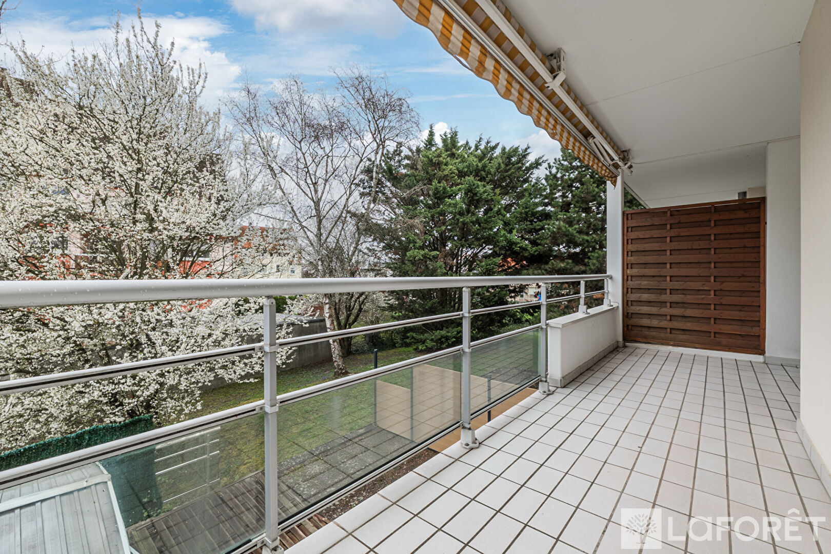 Le séjour et la cuisine donnent accès à un grand balcon de 12,20 m², idéal pour profiter d'un extérieur spacieux et au calme, véritable pièce de vie supplémentaire aux beaux jours.
