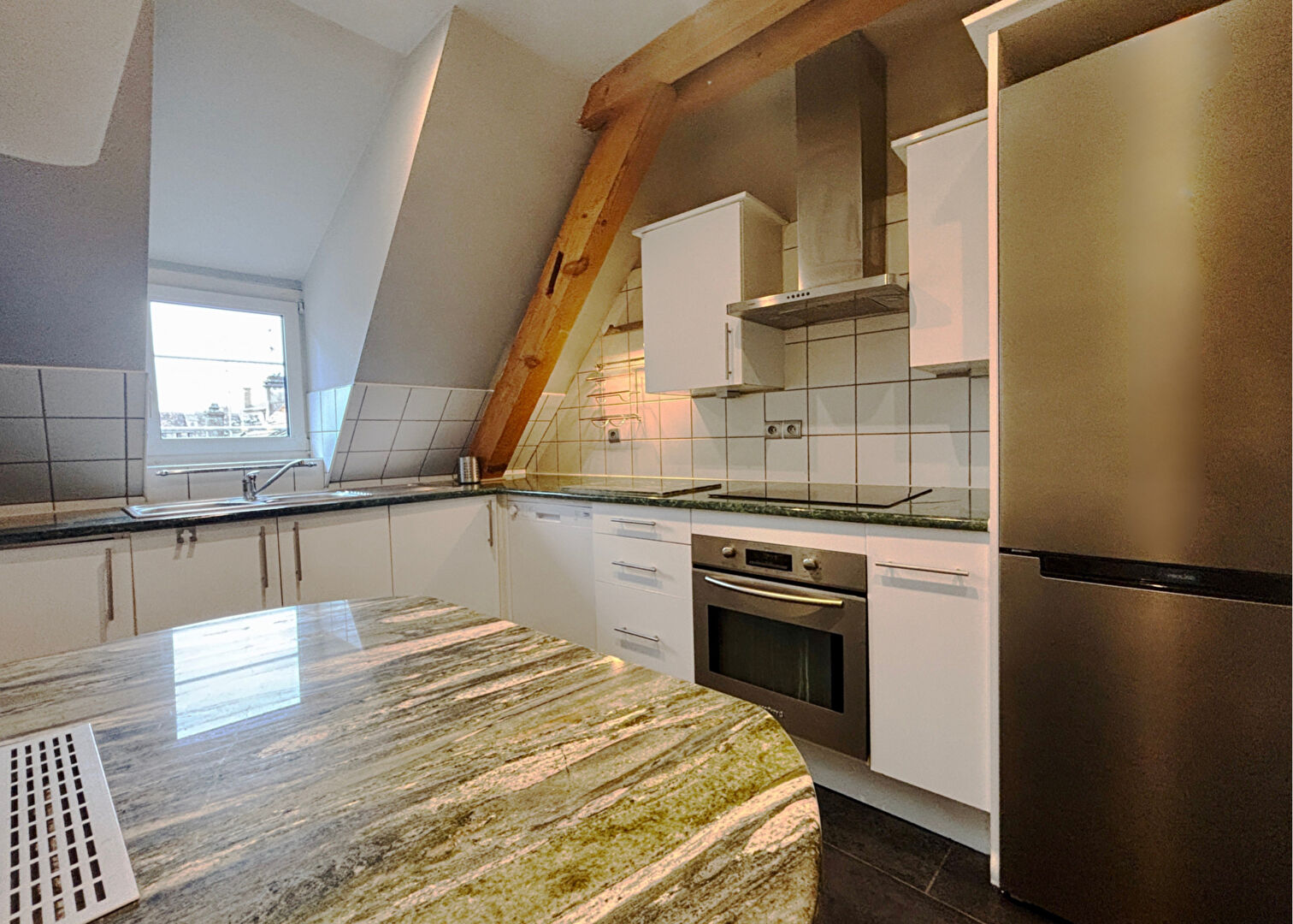 A 100m de la Cathédrale, l'appartement de 70,75m2 (environ 90m2 au sol) est composé d'un vaste séjour, deux chambres, une salle de bain avec wc et une cuisine séparée entièrement meublée. Un espace comble complète le bien.