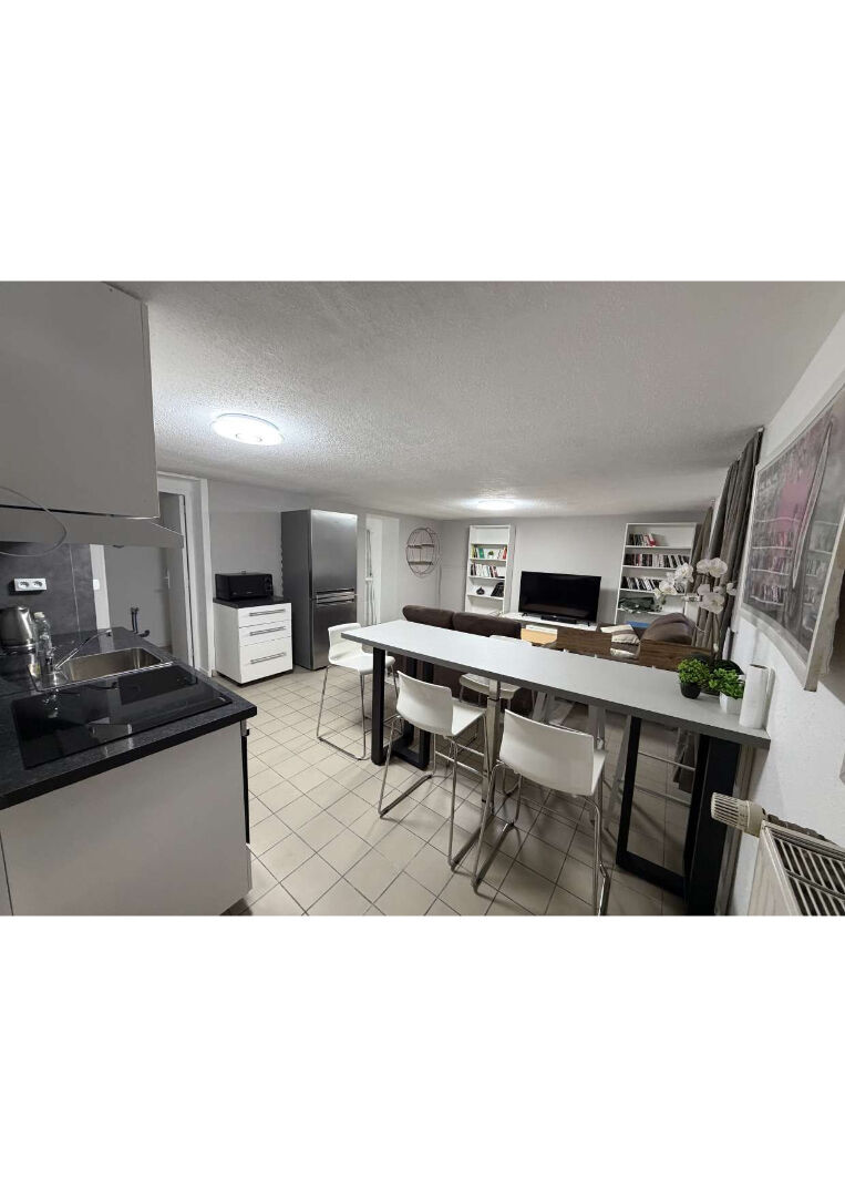 Il se compose d'une pièce de vie salon-séjour lumineuse, offrant un espace convivial, complétée par une cuisine aménagée et entièrement équipée.