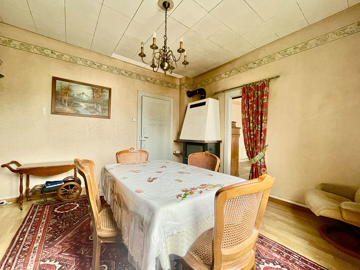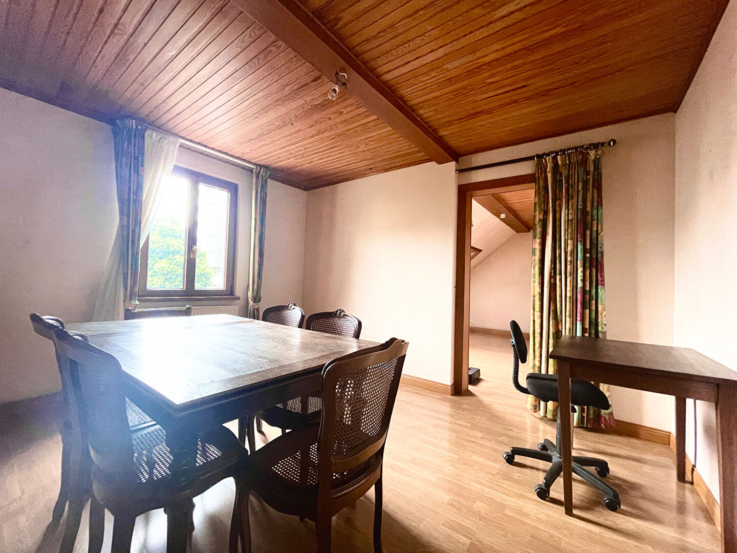 Sur le rez-de-chaussée, vous trouverez un beau séjour de 14,3 m2 attenant à une salle à manger de 14,6m2 avec cheminée, une grande cuisine indépendante équipée (mais à rénover), une agréable terrasse de 6,5 m2, un espace bureau de 8,5m2, une jolie chambre de 12,7m2, une salle-de-bains et un WC séparé.